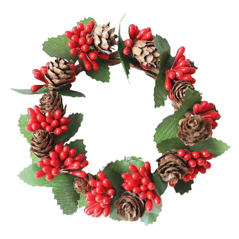 Рождественский венок форма подсвечник с Берри Pinecone подсвечник Рождество праздник гостиная украшение украшения