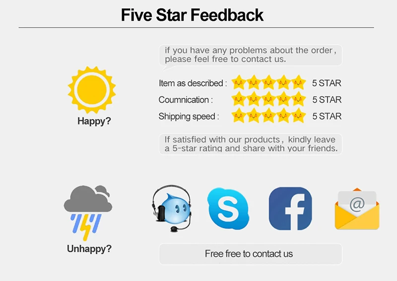 1. Пожалуйста, дайте нам пять-start отзывы, если вы довольны покупкой.