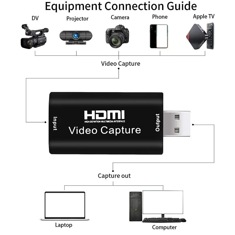 [HDMI сквозная Запись видео в реальном времени] HDMI сквозная и ПК запись может быть легко достигнуто через HDMI видео захвата. Совместимость с ОС Windows, Mac и Android. Вы можете использовать приложения для записи видео в реальном времени, такие как VLC Media Player, OBS Studio и XSplit.