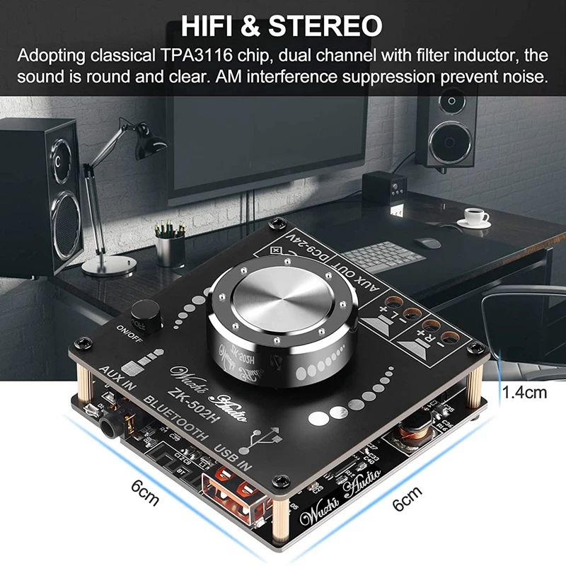 [HIFI стерео] Высокое качество двухканальный 100 Вт (50 Вт * 2) усилитель мощности для HIFI музыки. С AUX, Bluetooth, USB флеш-накопителем, USB звуковой картой несколько способов ввода аудио. С активными и пассивными динамиками два метода вывода. Вы можете наслаждаться музыкой по-разному.