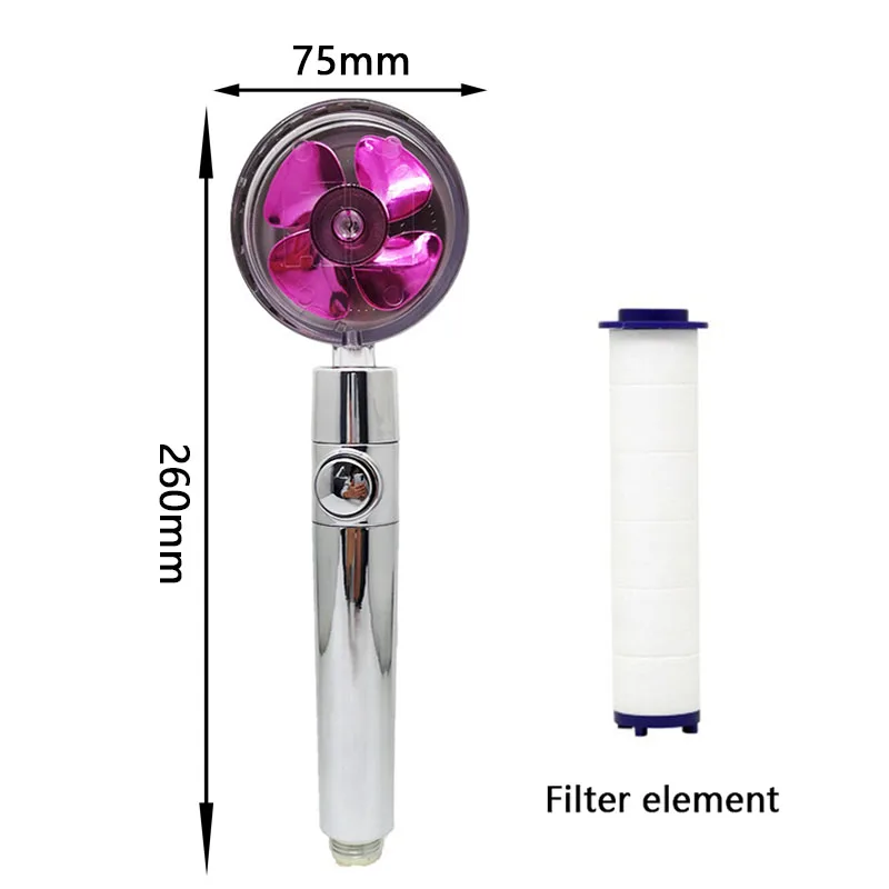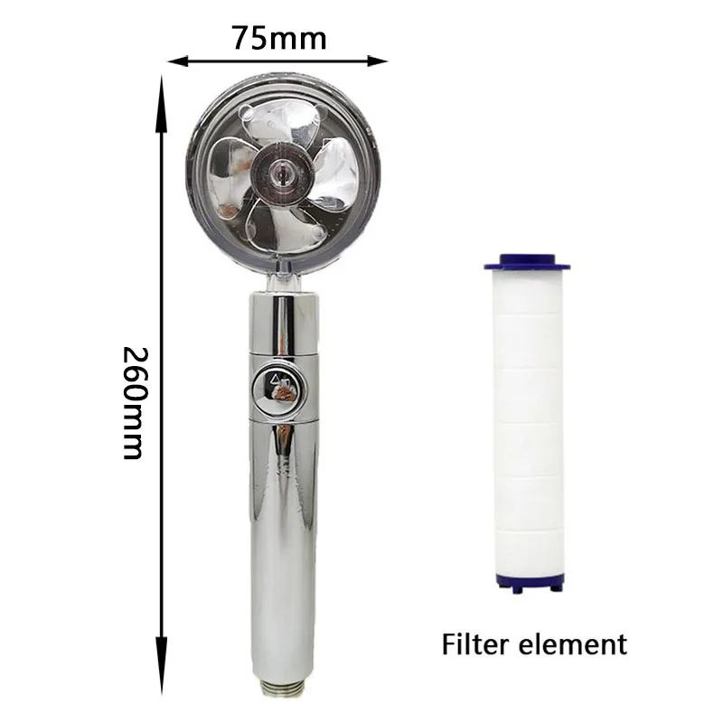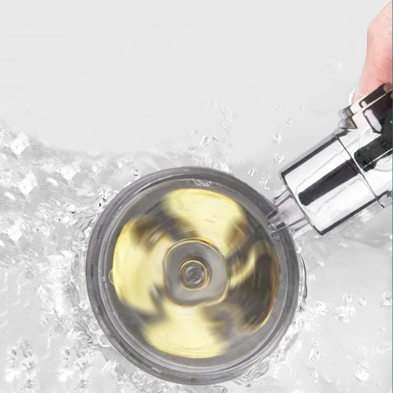 【Насадка для душа высокого давления обеспечивает поток воды через вращающееся колесо под давлением, увеличивая скорость потока воды, тем самым увеличивая давление воды. Применяется под низким давлением воды.