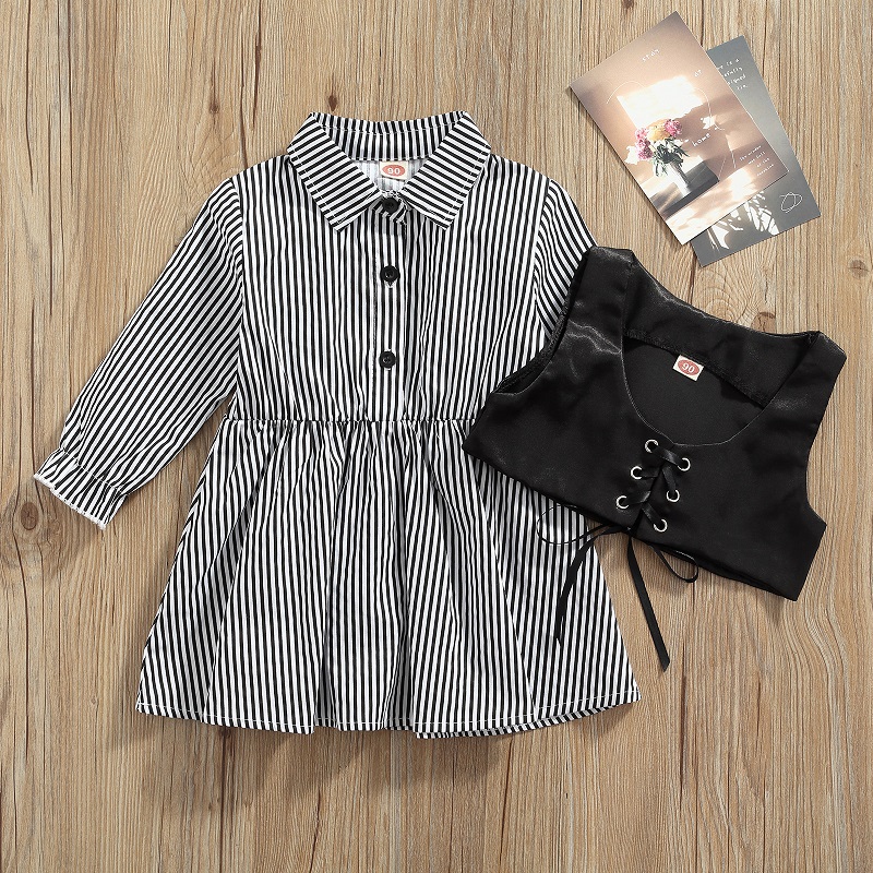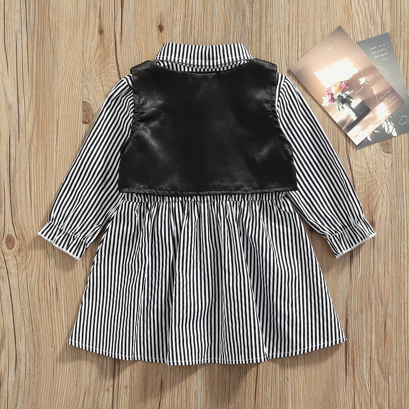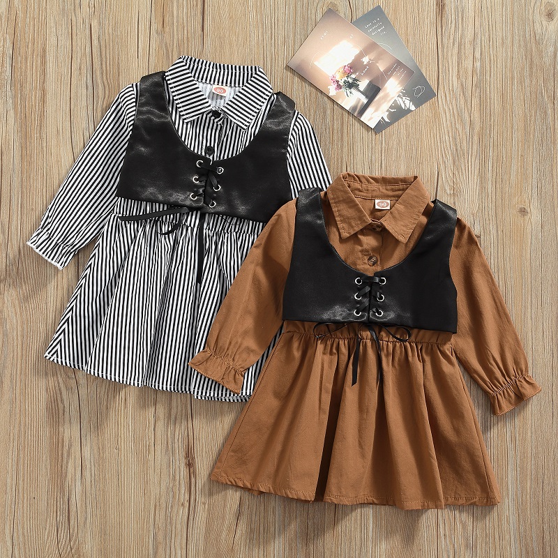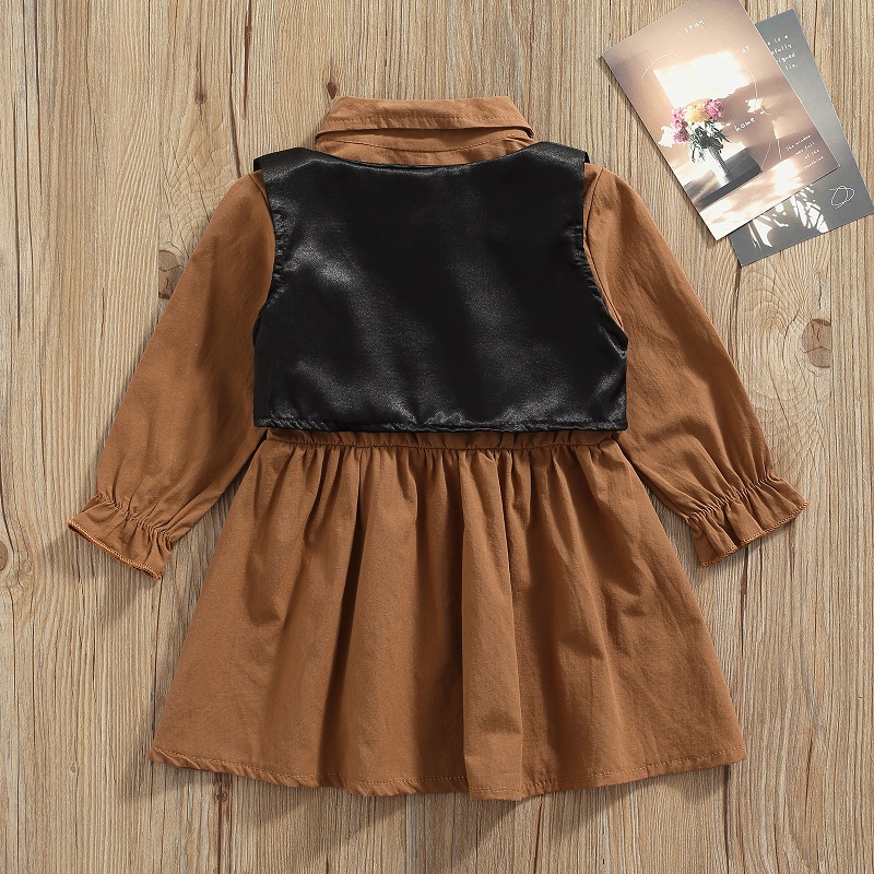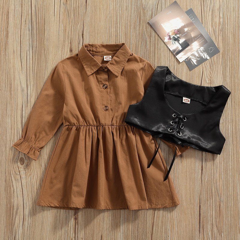 От 1 до 5 лет платье-блузка с длинными рукавами и отложным воротником для маленьких девочек жилет из искусственной кожи на завязках комплект одежды из 2 предметов для девочек