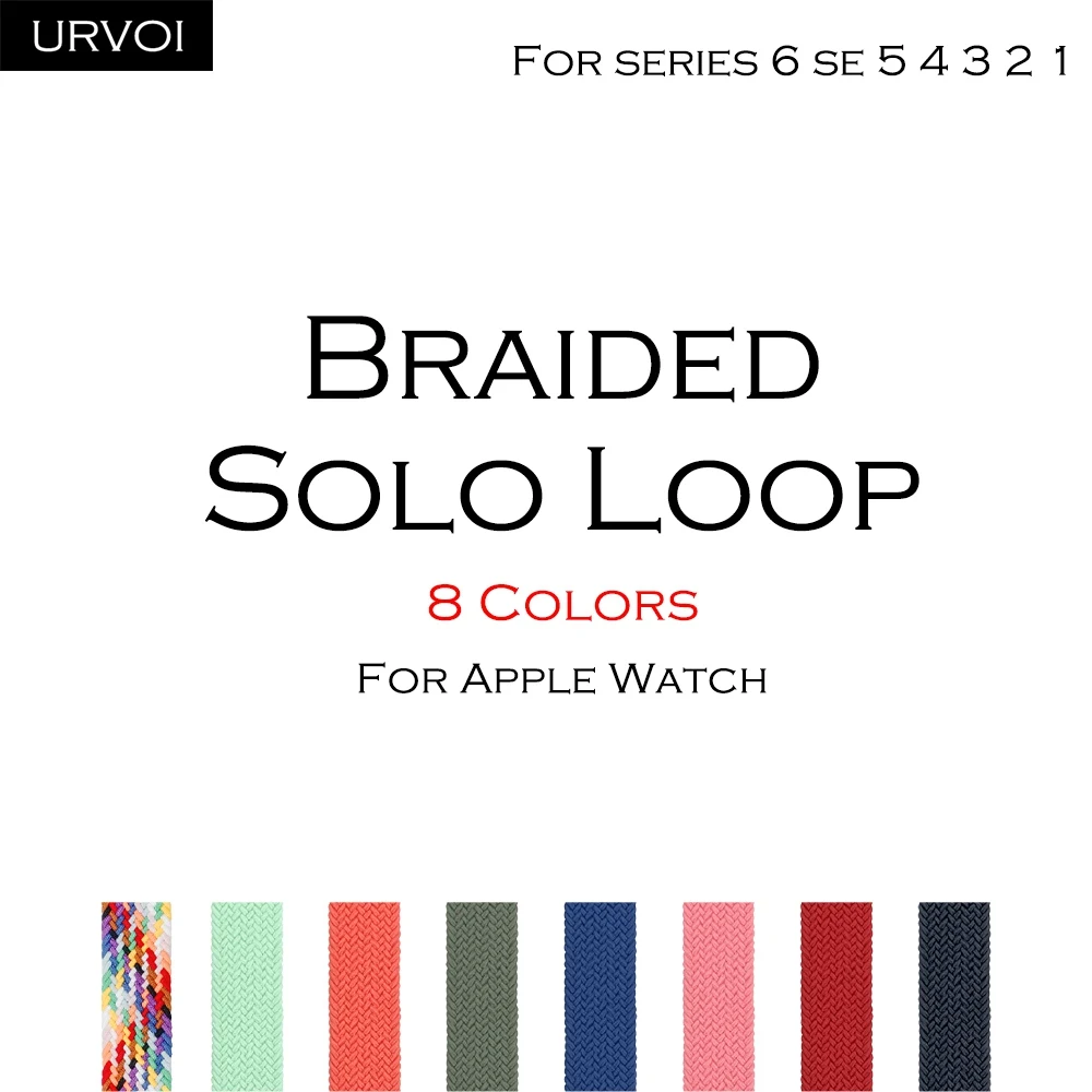 URVOI Плетеный Solo Loop для Apple Watch band series 6 SE 5 4 3 2 1 Спортивный растягивающийся ремешок для iWatch из полиэфирной пряжи