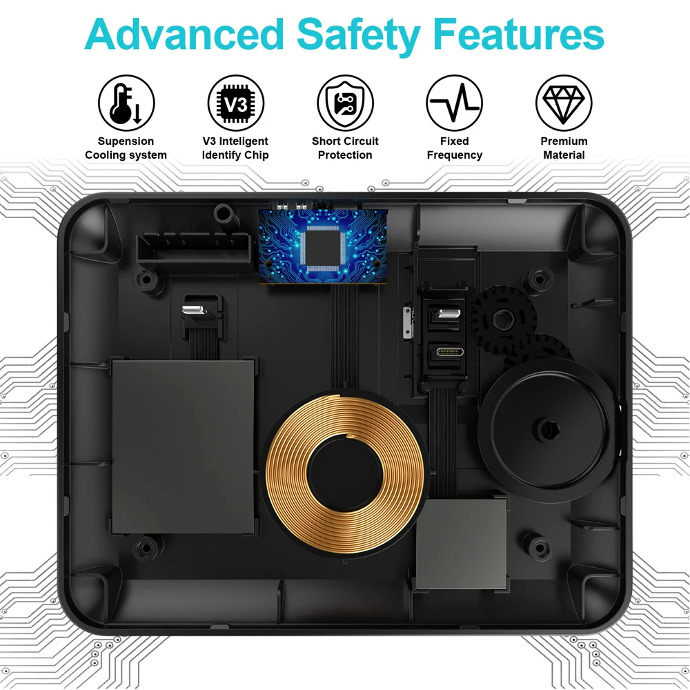 [Безопаснее и проще в использовании]: эксклюзивная многофункциональная интеллектуальная технология защиты обеспечивает контроль температуры, защиту от перенапряжения, защиту от короткого замыкания. Охлаждающие отверстия на дне обеспечивают большую теплоотдачу; Кроме того, это Беспроводное зарядное устройство сертифицировано Qi, изготовлено из АБС-материала, который является огнестойким, вы можете приобрести его по гарантии. Двойная гарантия и Двойная безопасность обеспечивают вам безопасность. Чтобы получить лучший опыт, мы хотели бы, чтобы вы сняли чехол для телефона.