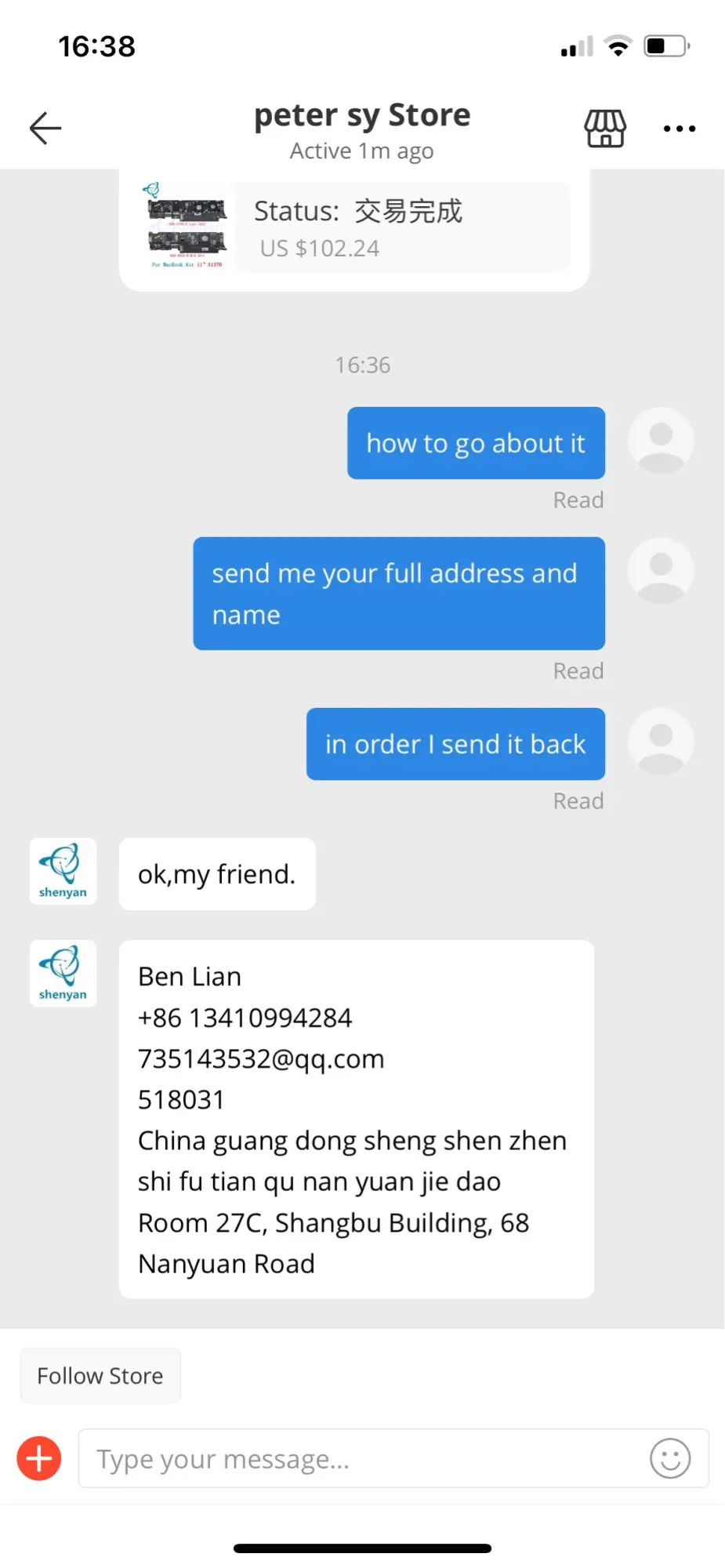 le responderemos en 24 horas. Días para llegar a Sudamérica.