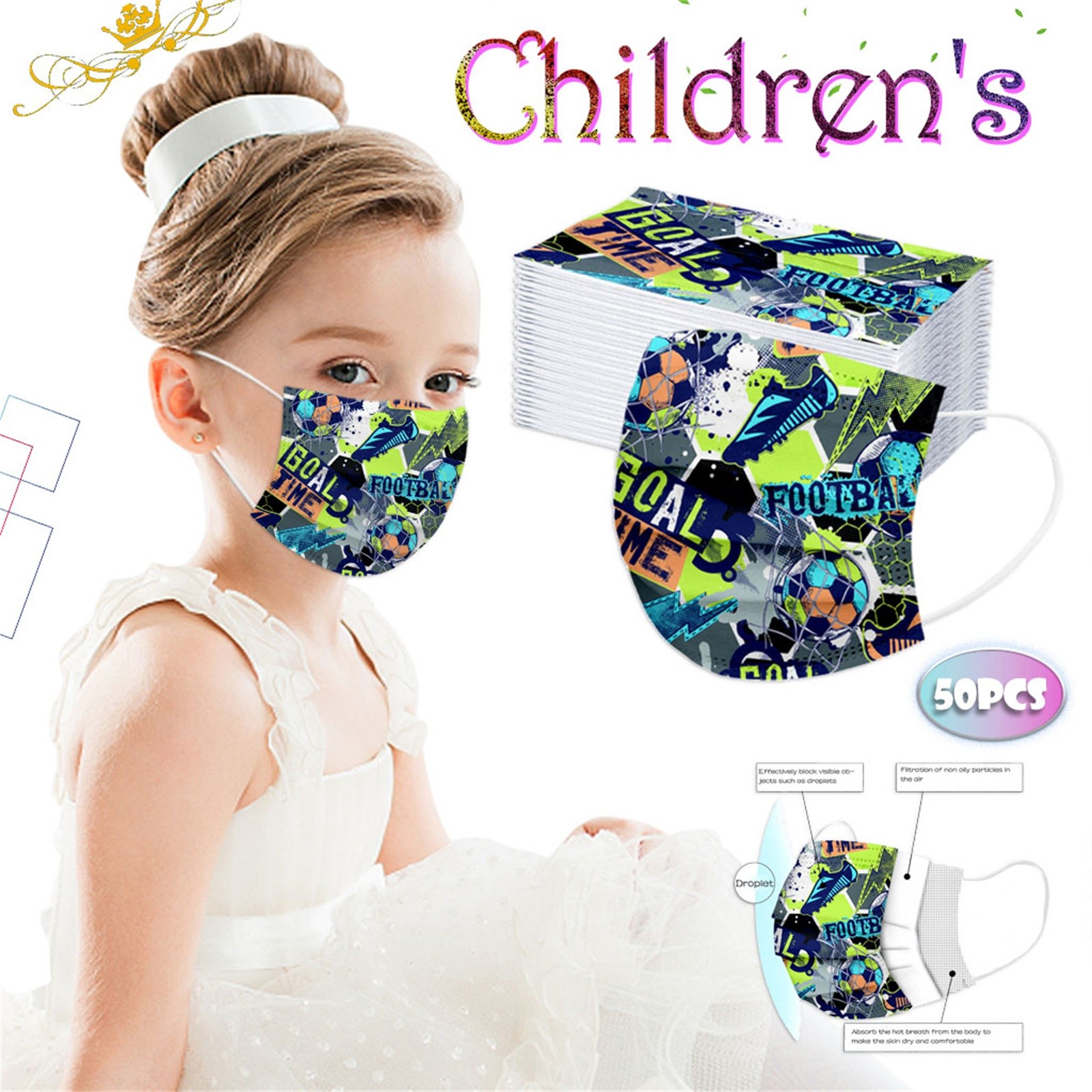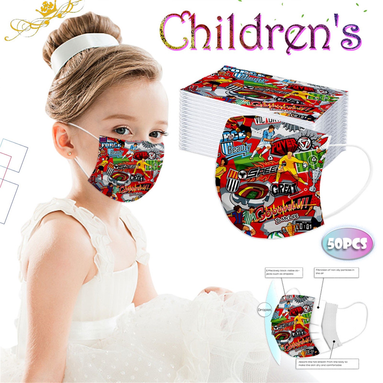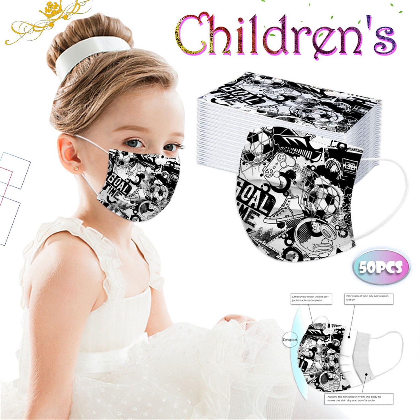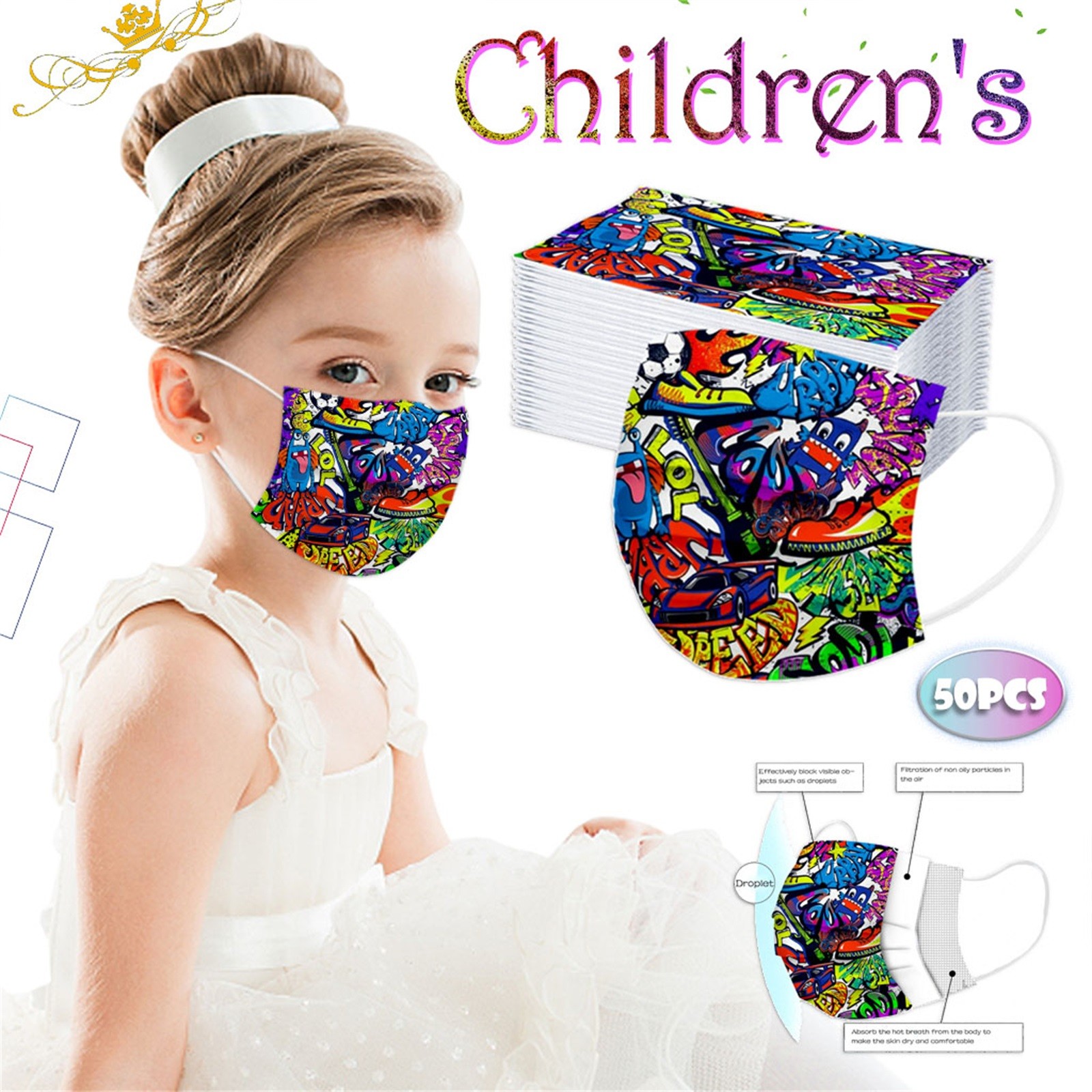 50 шт. детская печатная маска, 3 слоя защитные маски для лица, одноразовая маска
