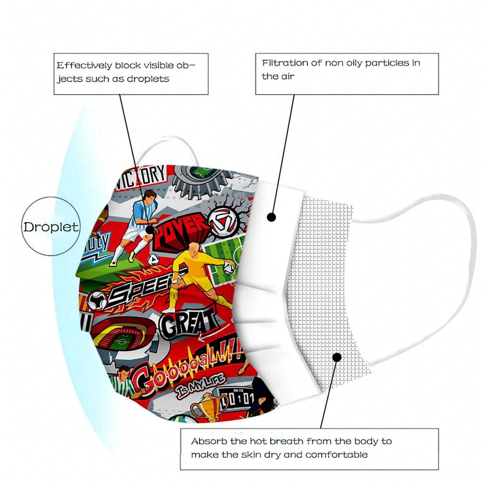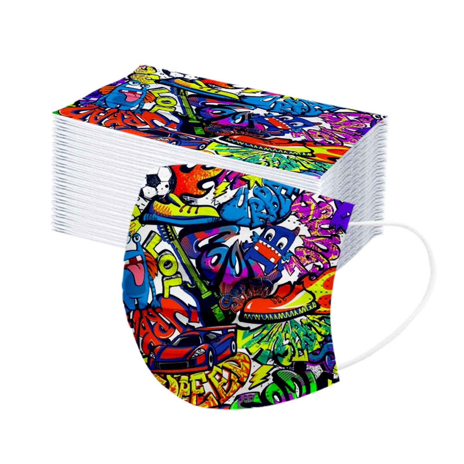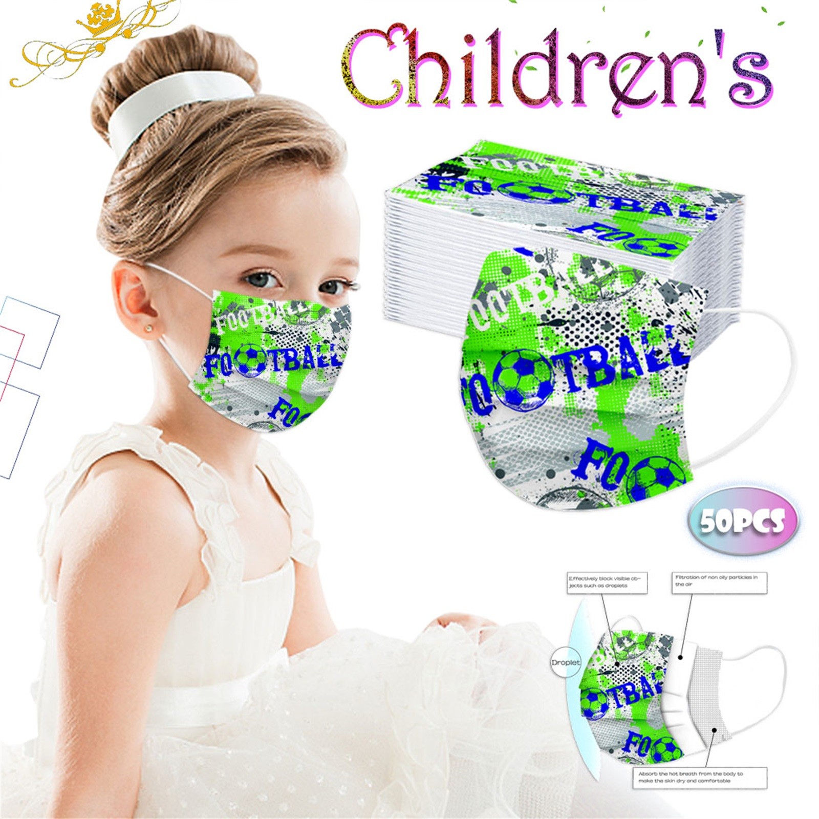 50 шт. детская печатная маска, 3 слоя защитные маски для лица, одноразовая маска