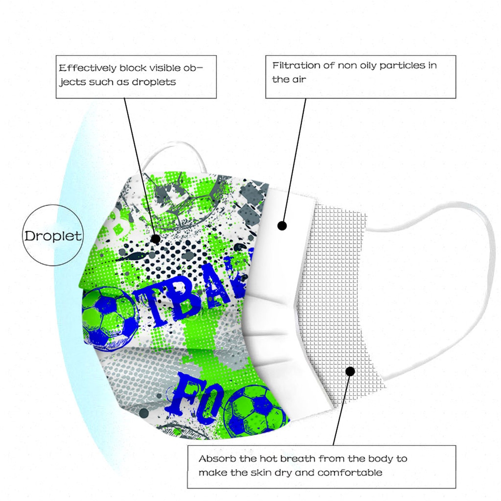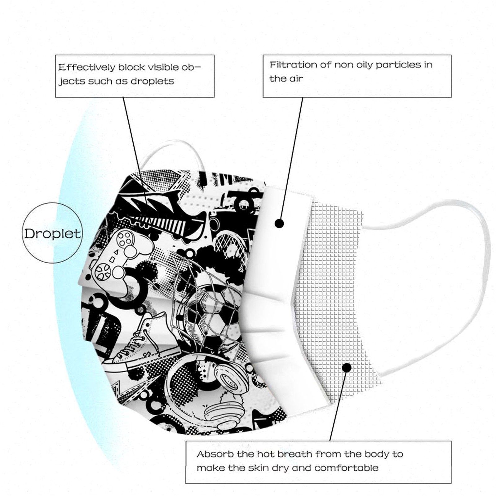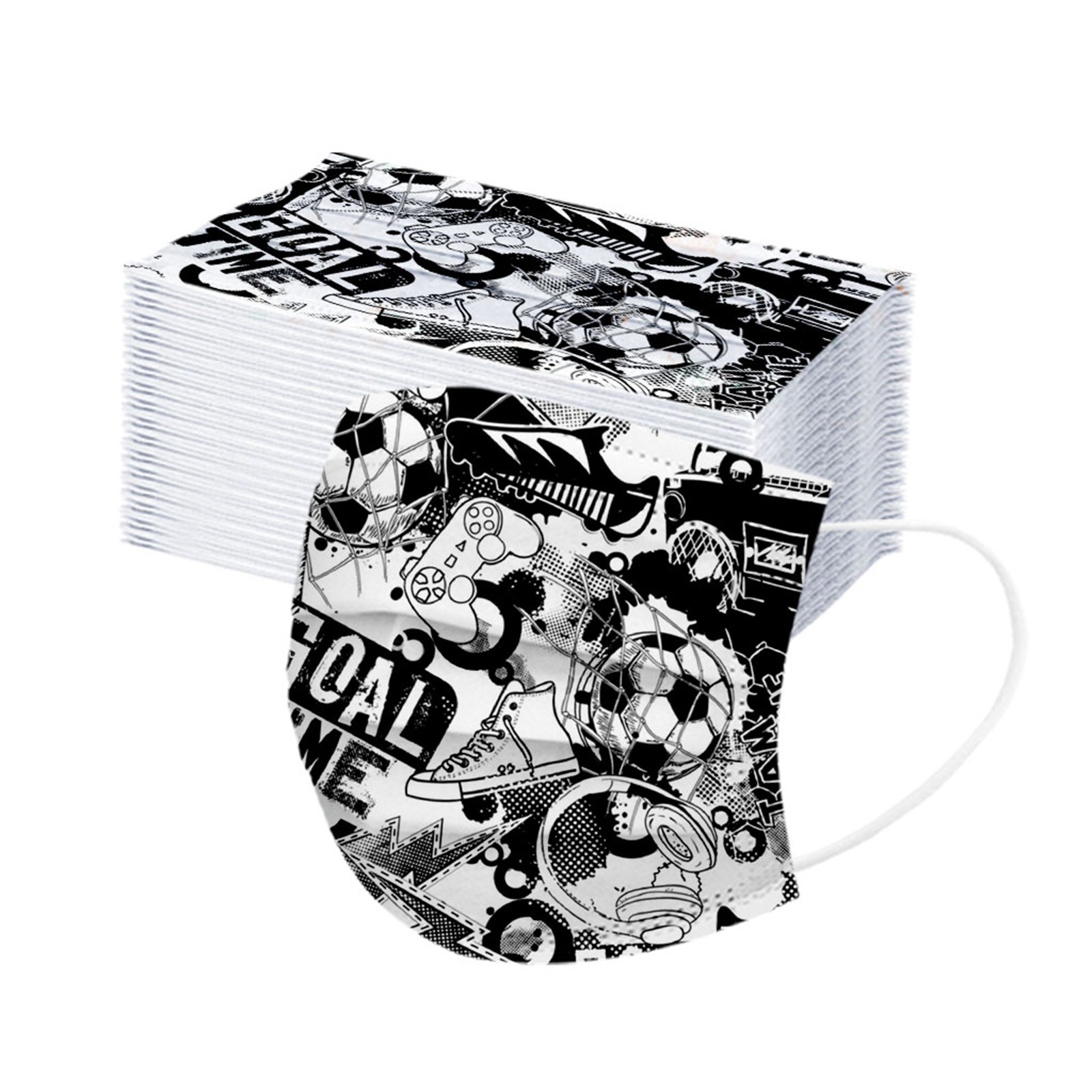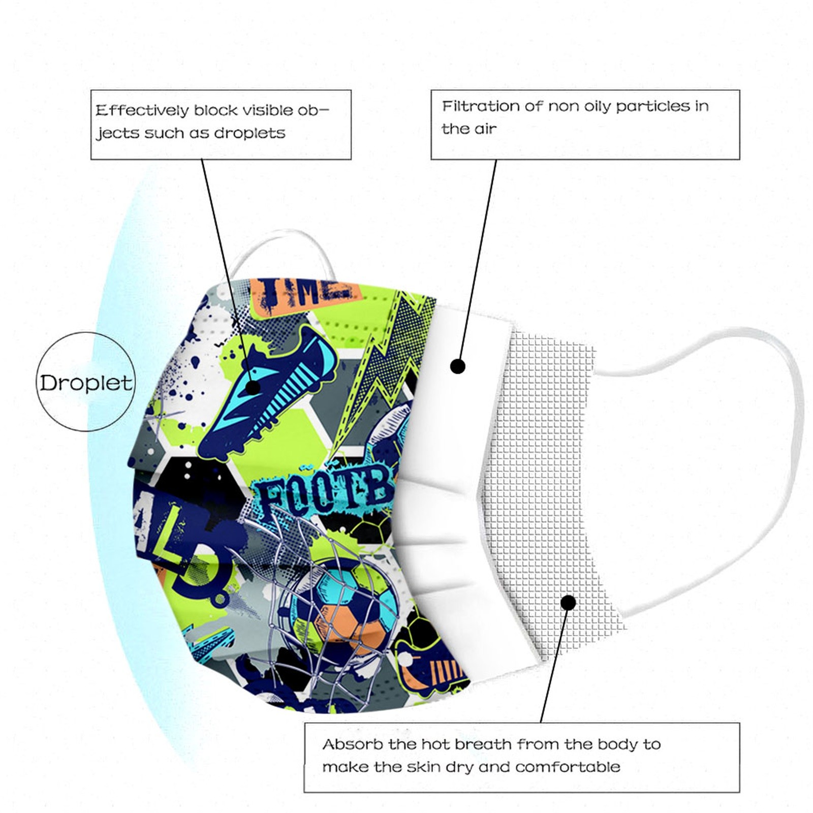 50 шт. детская печатная маска, 3 слоя защитные маски для лица, одноразовая маска