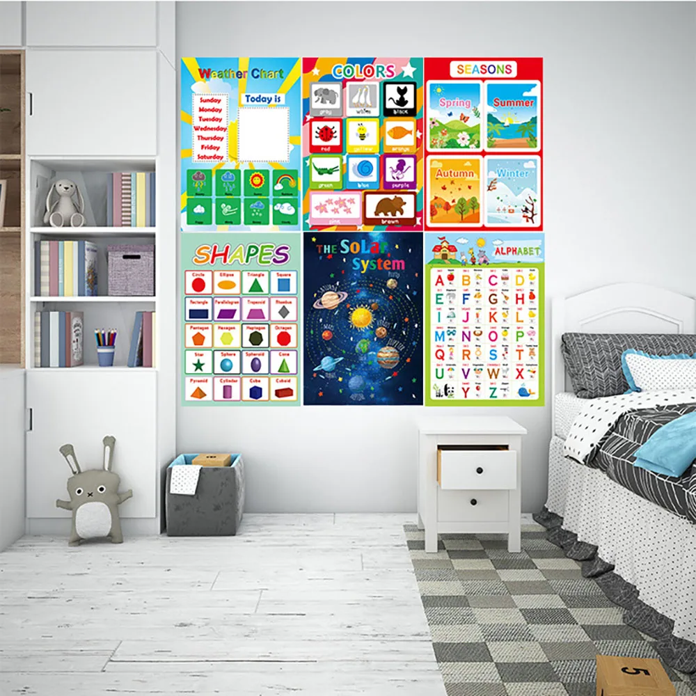 12 шт. образовательные дошкольные плакаты диаграммы дней недели месяца цифры и алфавит буквы погода формы цветной стикер на стену