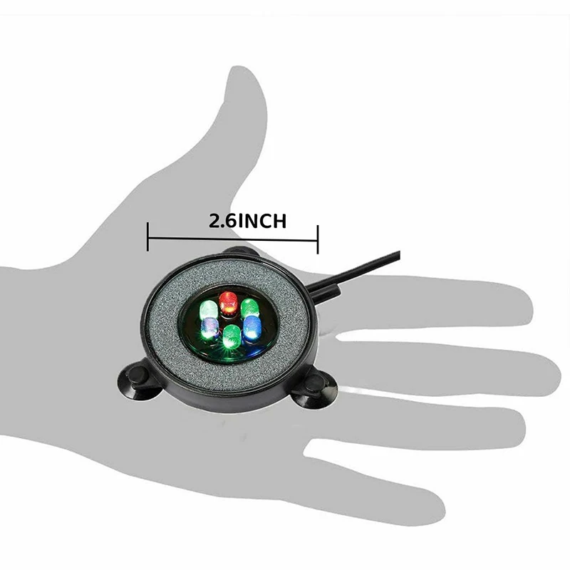 Может подключаться к воздушному насосу, создает декоративный массив пузырьков и красочной колонны воздуха