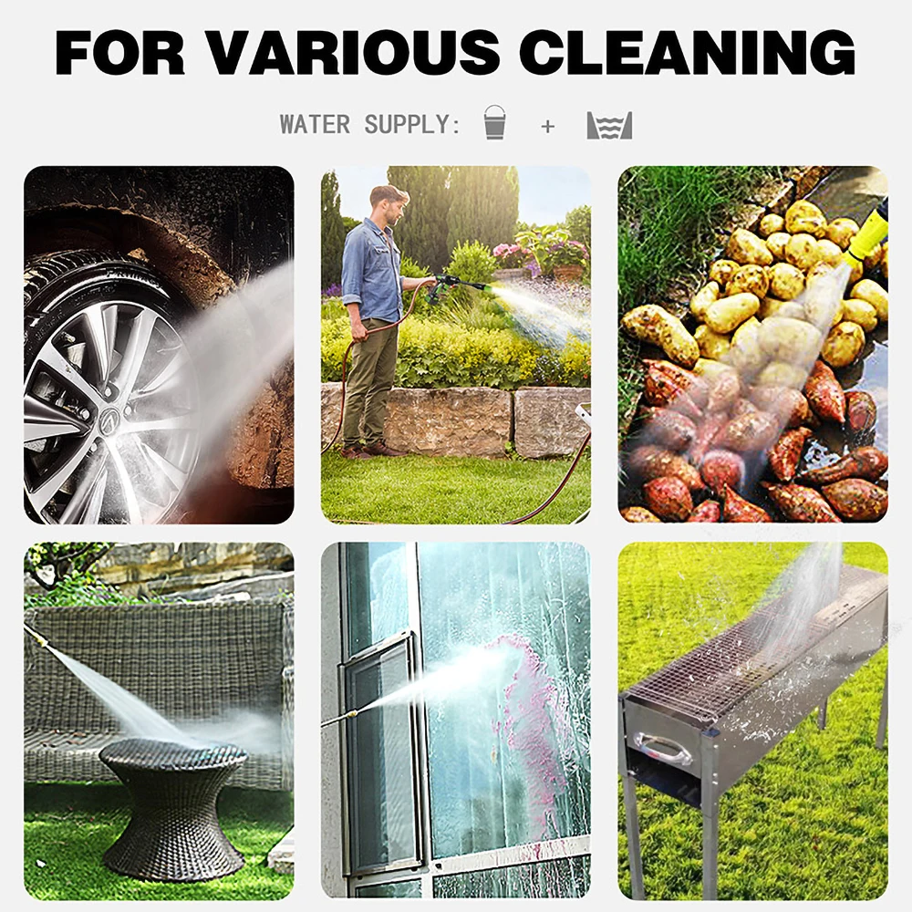 [Одна машина с несколькими функциями] Чистка и обслуживание различных автотранспортных средств, инженерных транспортных средств, инженерной техники и поддерживающей продукции сельскохозяйственной техники. Наш чистящий пистолет высокого давления особенно подходит для очистки внешних стен, полов, ванных комнат, бассейнов, дверей и окон зданий и углов, которые сложно вручную очистить. Это лучшая мойка высокого давления для кемпинга на открытом воздухе и дальних поездок.