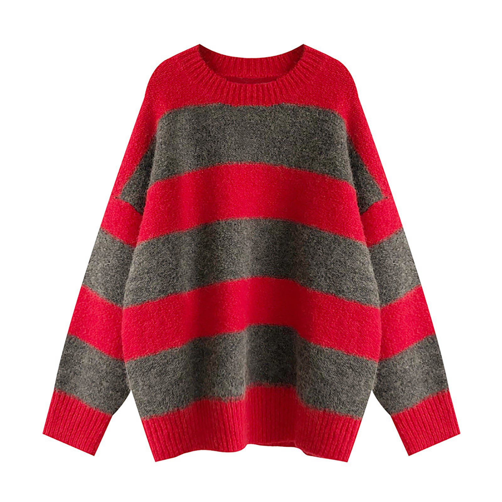 Женский Повседневный модный свободный свитер в полоску с длинными рукавами и круглым вырезом