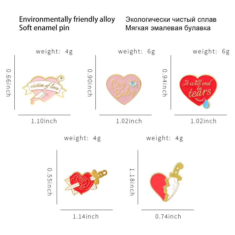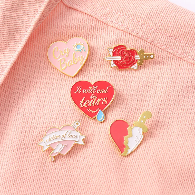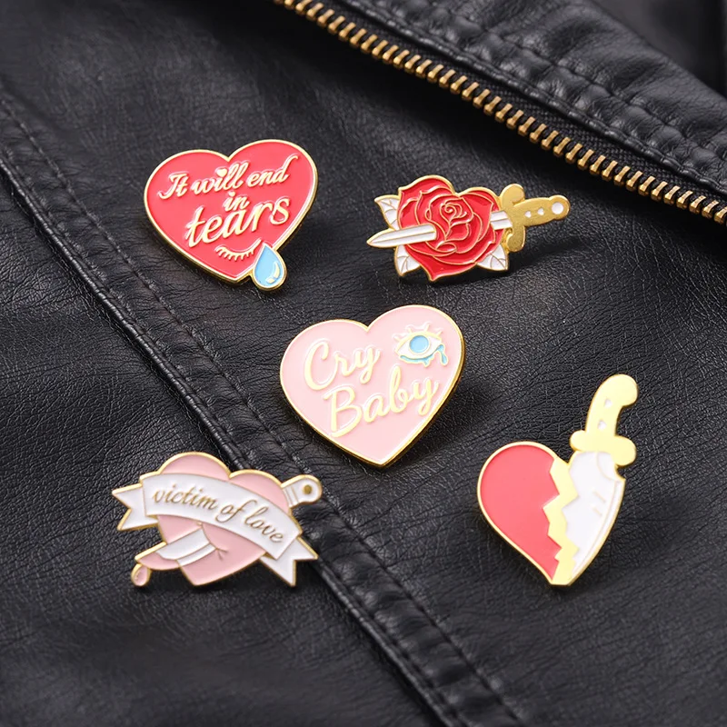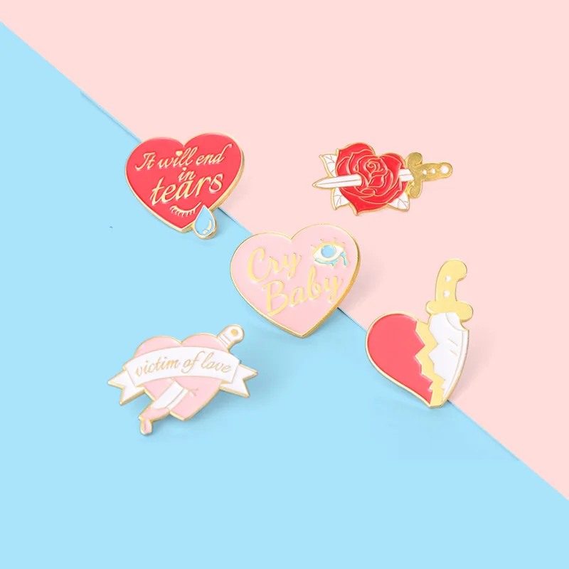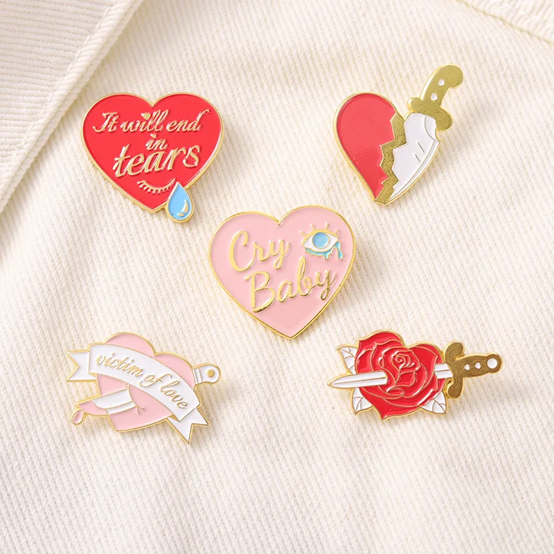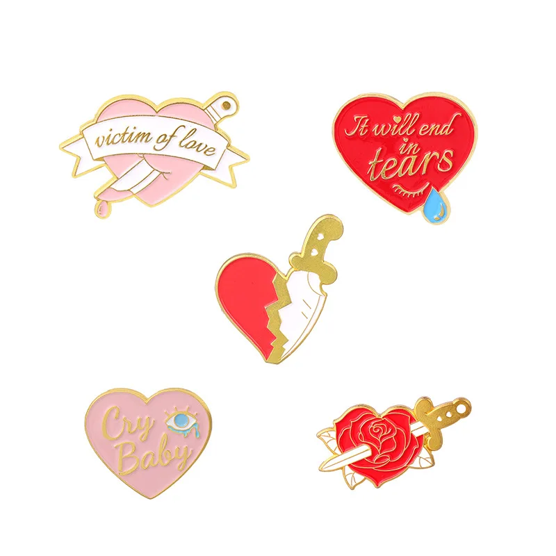 Один нож в форме сердца, брошь в форме сердца с ножом, брошь в форме сердца, брошь в виде Розы, кинжал, слезы, брошь в форме сердца, брошь в виде Розы