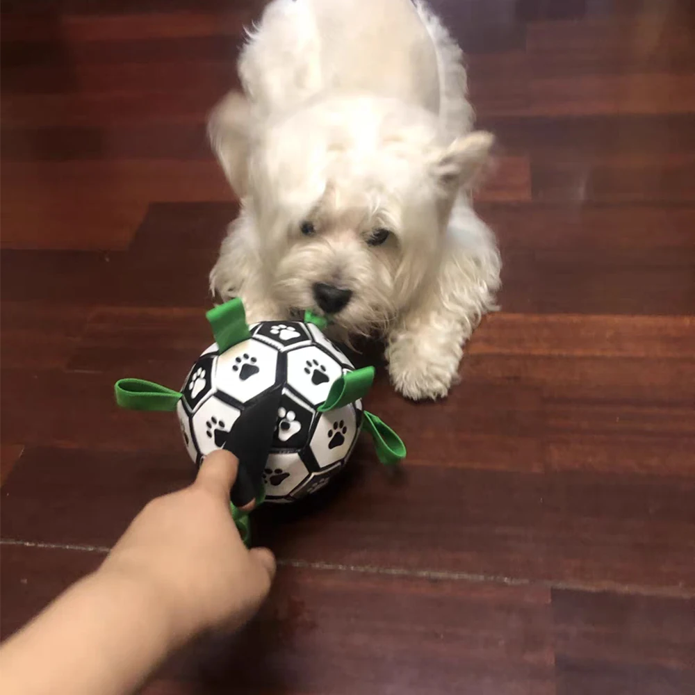 Этот собачий футбольный мяч с захватом тапочек создает нестабильный скачок, который собаки любят гоняться, делая эту идеальную интерактивная игрушка для собак для всей семьи.