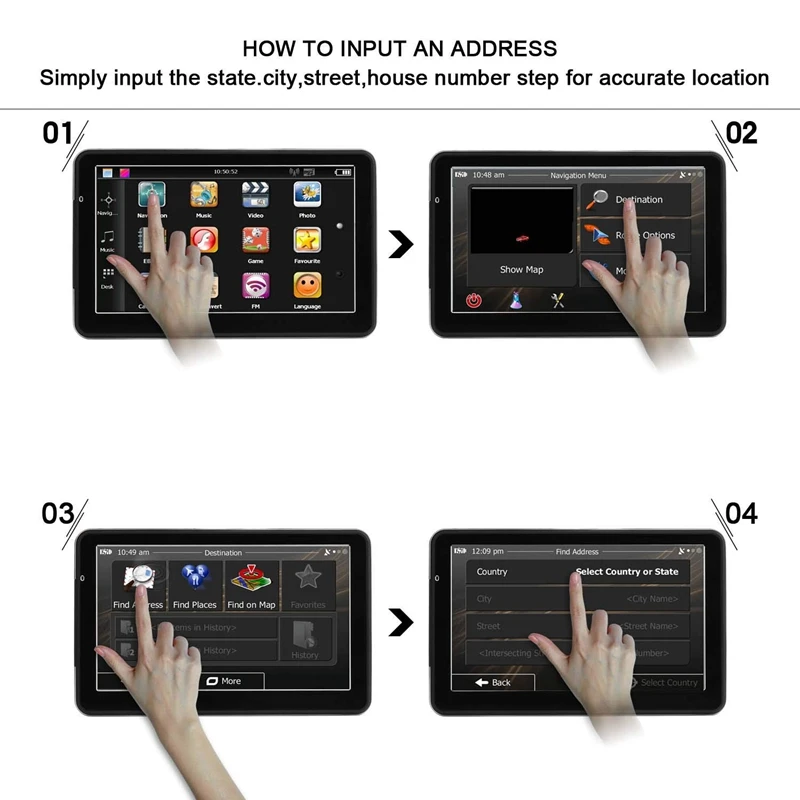 Автомобильный gps-навигатор MediaTek2531 CPU, встроенный аккумулятор 1500 мАч обеспечивает быструю работу и функции,