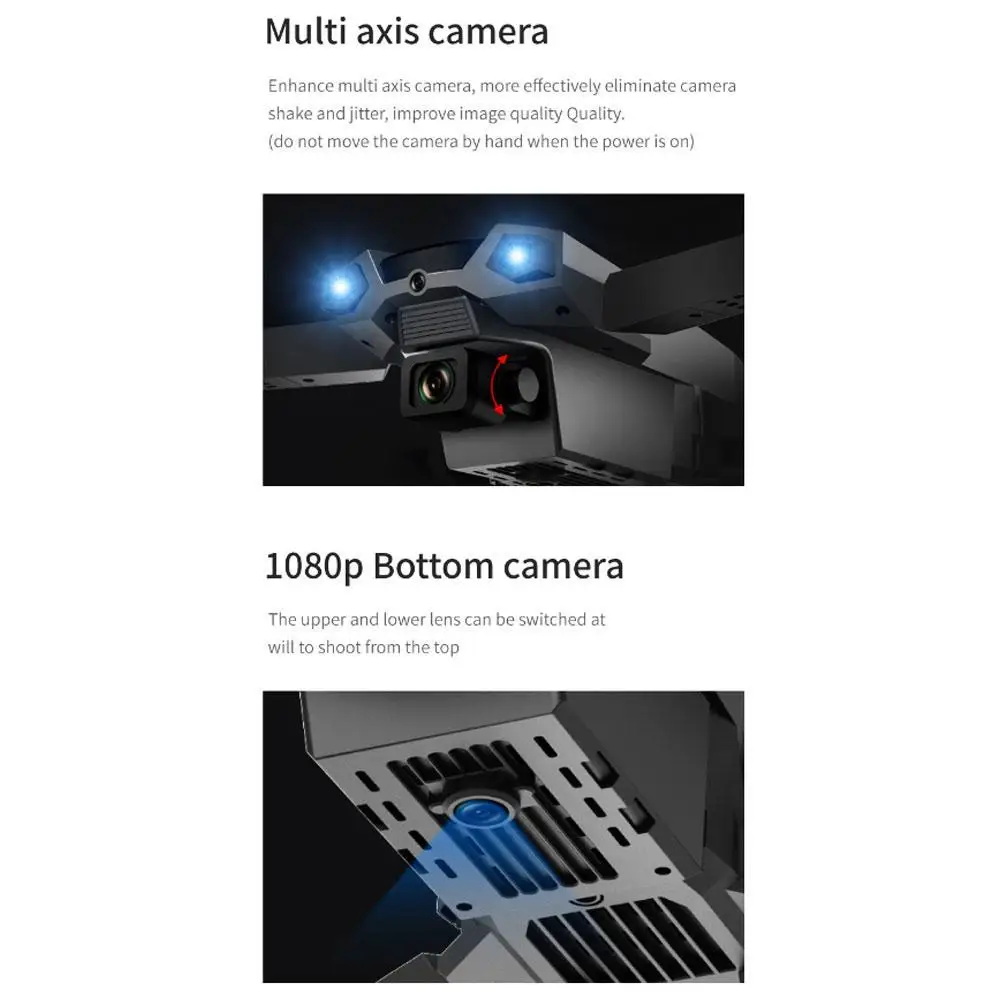 Съемка одной кнопкой и посадка одной кнопкой, поворот на 360 градусов вперед и назад, вверх и вниз, вперед и назад, полет влево и вправо, поворот, безголовый режим (с камерой можно добавить функции: жесты, видео, музыка, фото наклейки, голосовое управление, Аварийная остановка, траектория полета, Гравитационный датчик)