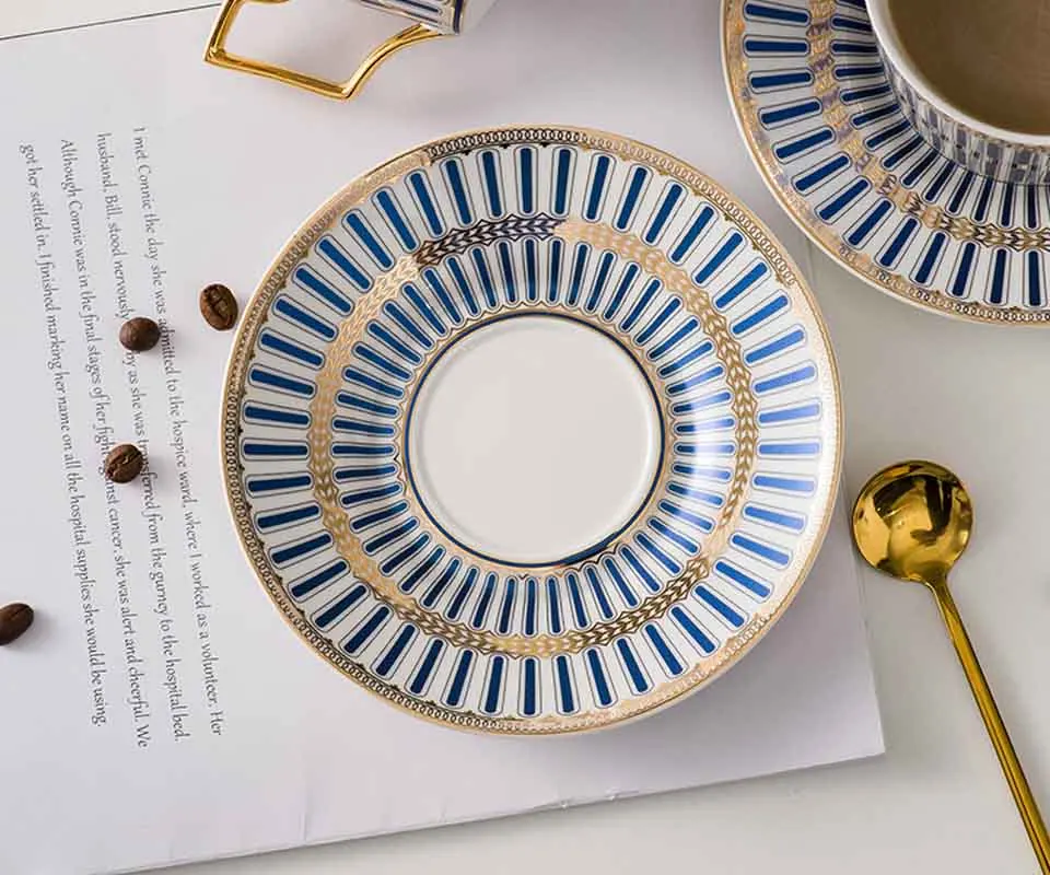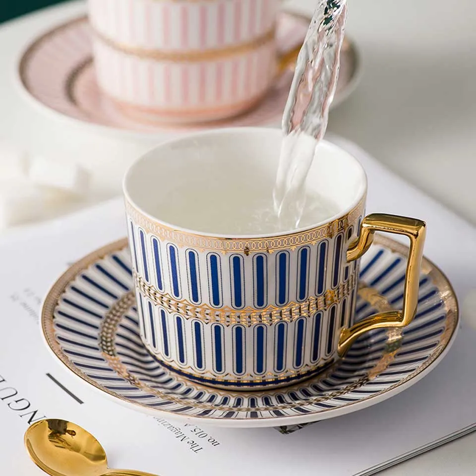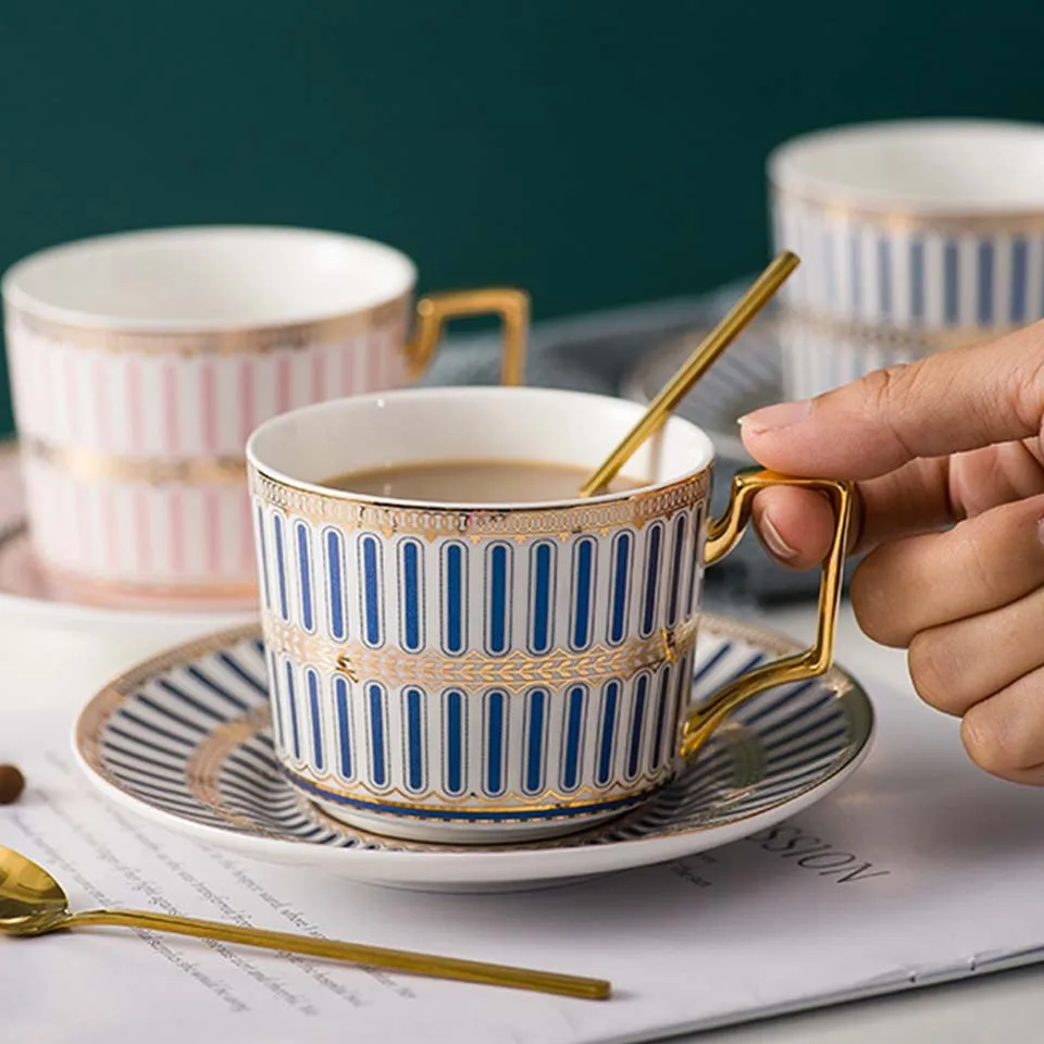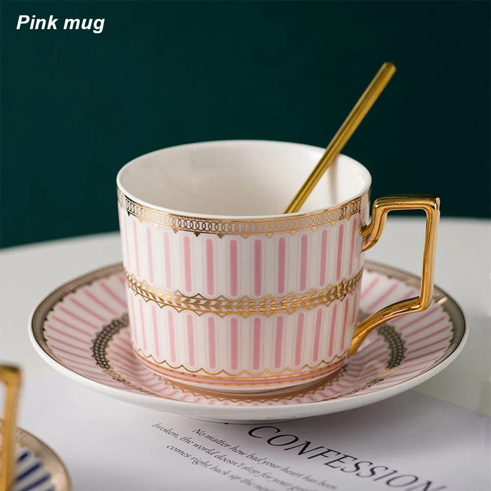 BORREY Cearmic Coffee Mug Tea Cup With Saucer Spoon Hand Painted Gold Handle Handmade Cups European Mug For Coffee Milk Oatmeal Creative Birthday Gifts