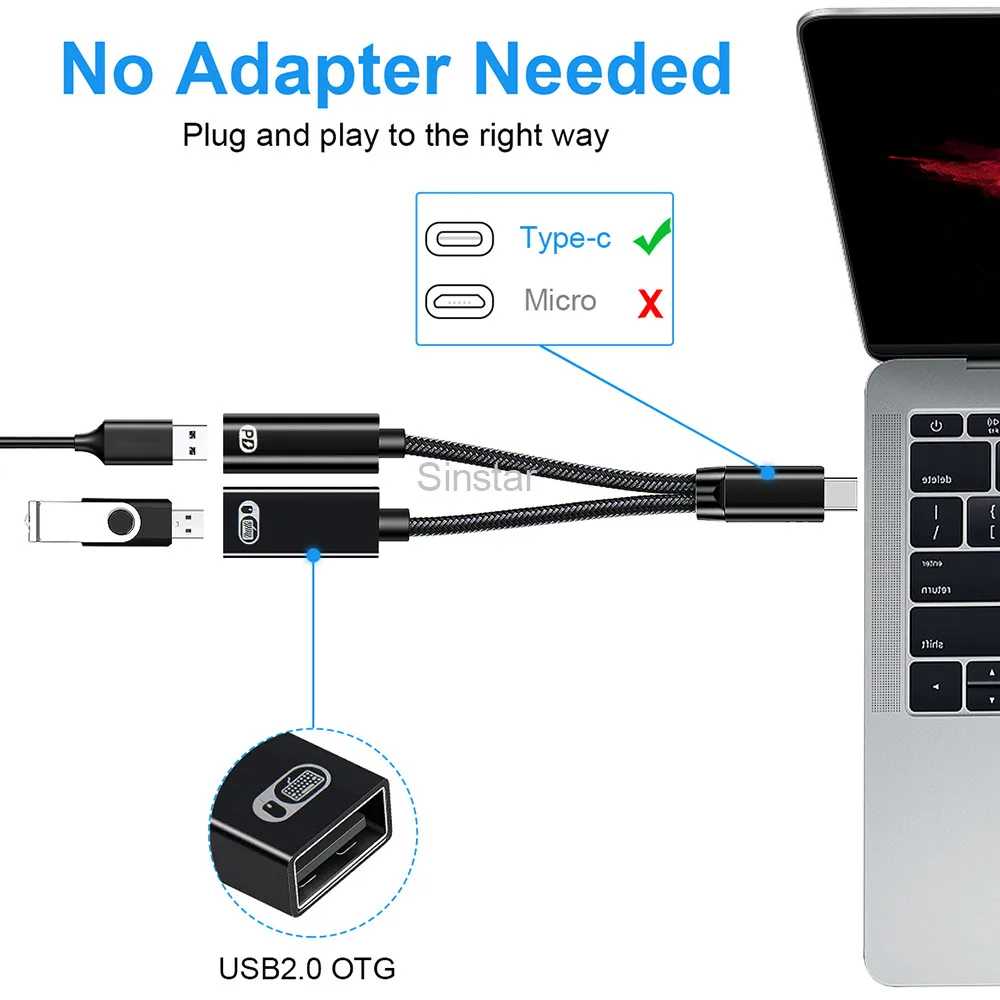 1. Contains one USB-C 60W PD, 1USB-A 2.0 ports, connected with an output Type-C port, providing high data transfer.Only work for USB 2.0 device ,the USB port will NOT work for mac book.Doesn't fit fire tv stick,Does not work with kindle fire,Doesn't work with LG G6 phone,Didn't do PD on moto g stylus