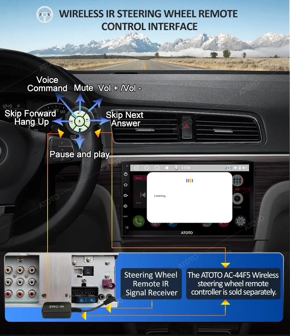 Настраиваемый Bluetooth в S8 позволяет пробуждать голосовой помощник телефона (Siri, Google assistant) через bluetooth-соединение. Таким образом, пользователи могут использовать определенную кнопку на экране, рулевое колесо или Беспроводное дистанционное управление ATOTO AC-44F5, чтобы отправлять сообщения, совершать звонки и управлять музыкой своим голосом. Гораздо безопаснее, гораздо удобнее;