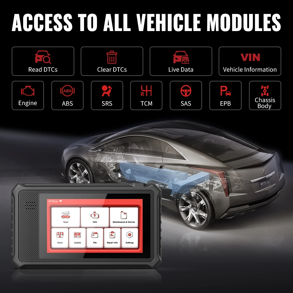 * Прочитайте DTCs из всех электронных систем управления транспортного средства, чтобы найти проблемные зоны и предложить решения;