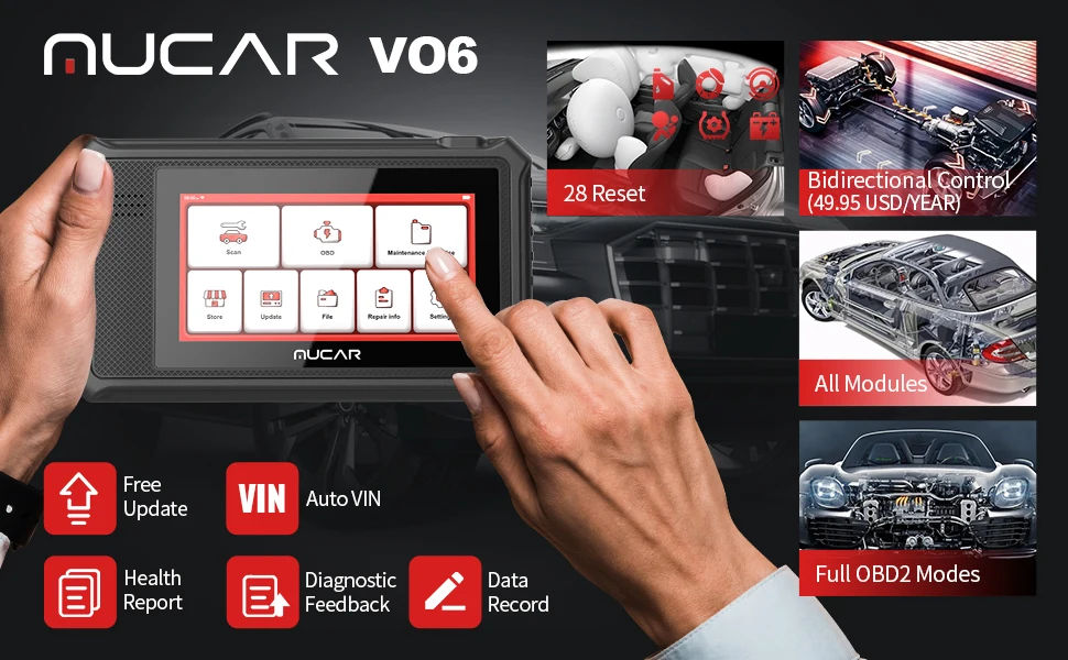 MUCAR VO6 как диагностическое устройство OBD II наивысшего уровня 2021 для пользователей, поддерживаемых DIY, включает считывание кода/очистку потока данных, испытание на приведение в действие, специальные функции и т. д.