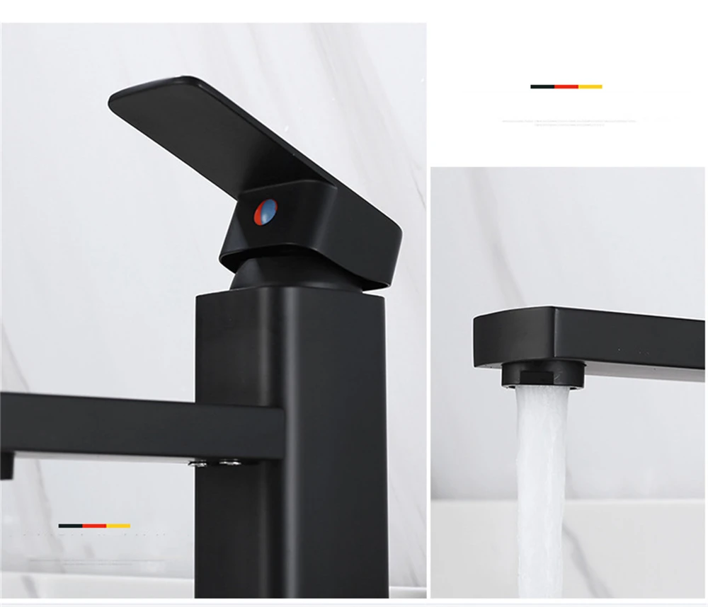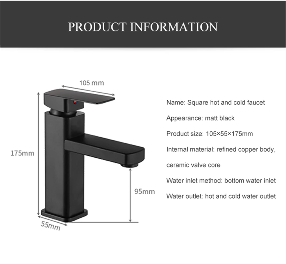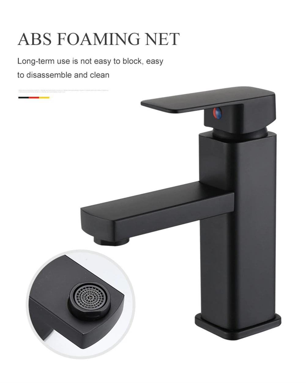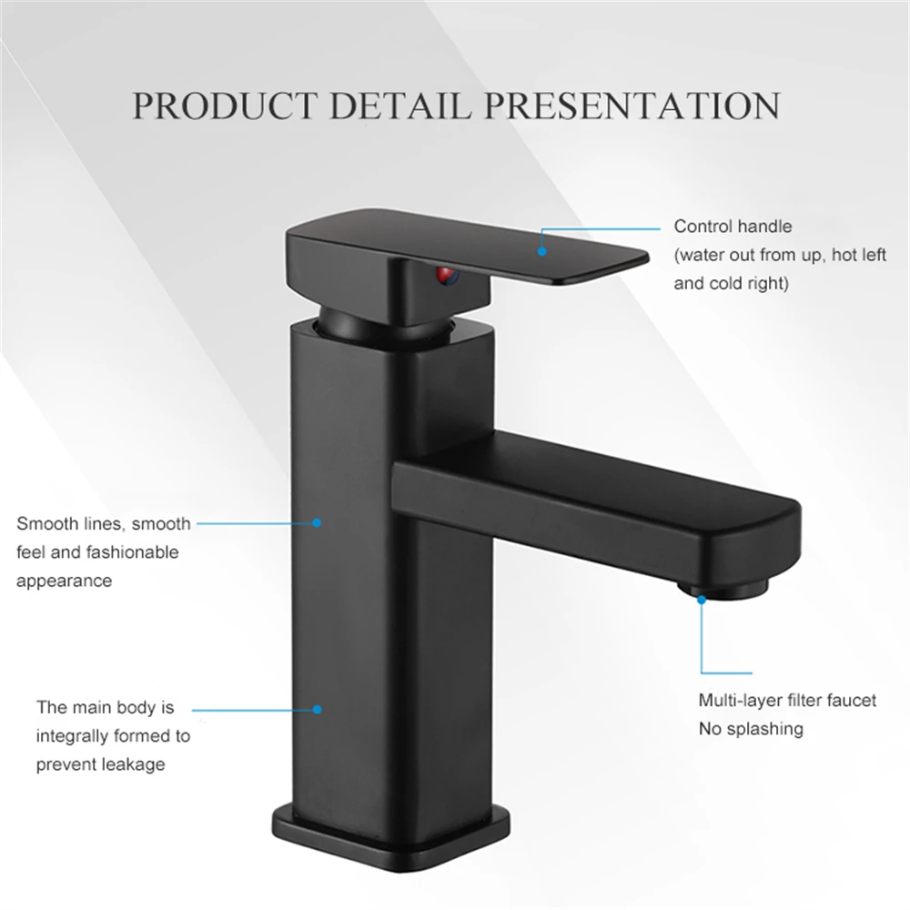 Черный квадратный смеситель для раковины, крашеный кран из нержавеющей стали, кран с одной ручкой для раковины, смеситель для горячей и холодной воды, аксессуары для ванной комнаты
