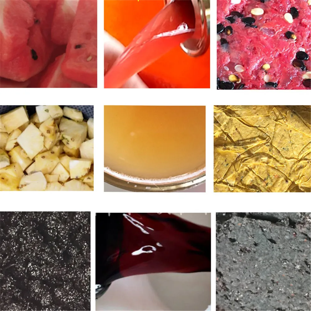 1. Suitable for fruit and vegetable juice, fermented fruit wine, rice wine, rice wine, rice pulp, grain wine, enzyme, Chinese medicine residue, pickled pickles, vegetables, biological fermentation feed residue and other processing industries for press filtration, juice squeezed, solid Liquid separation, slag juice separation, dewatering and drying, etc.,the effect of which has certain differences due to different materials. 2. All sus304 stainless steel body, easy to clean and not easy to corrode. 3. It is easy to clean and maintain and operate. 4. The hydraulic oil cylinder adopts 4 kinds of sealing forms, which greatly improves the service life of the oil cylinder, and at the same time prevents the hydraulic oil from seeping out of contaminated food.