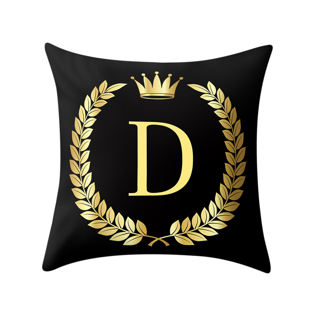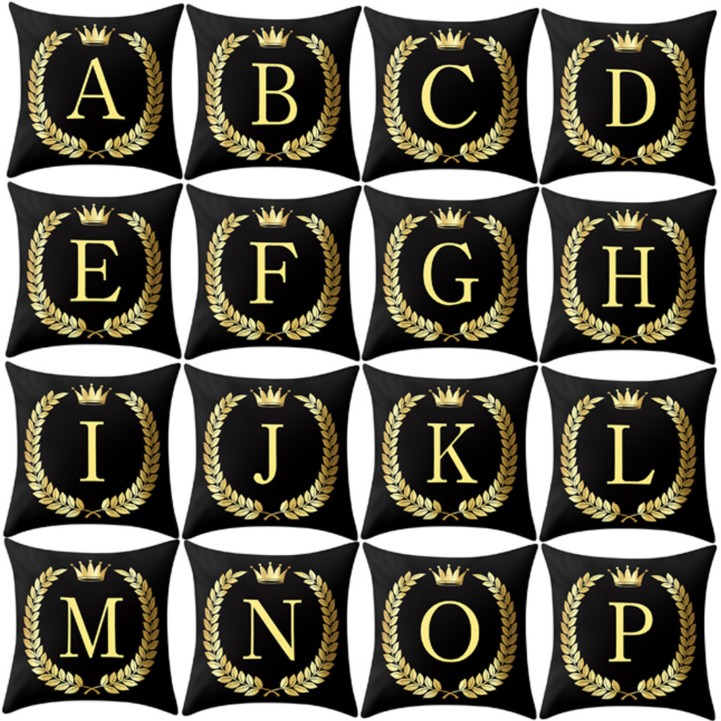 45x45cm Pillow Cover Black and Gold Letter Pillowcase Sofa Cushion Cover Home Decor