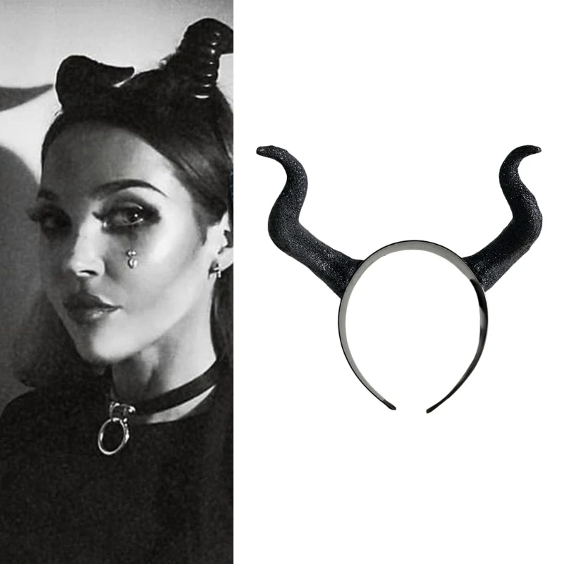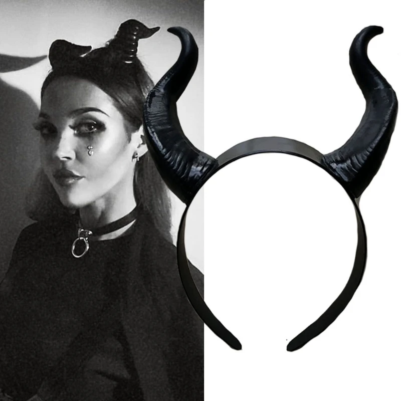 Головная повязка злой королевы с длинными рожками быка, как показано, завершите свой аксессуар для костюма.