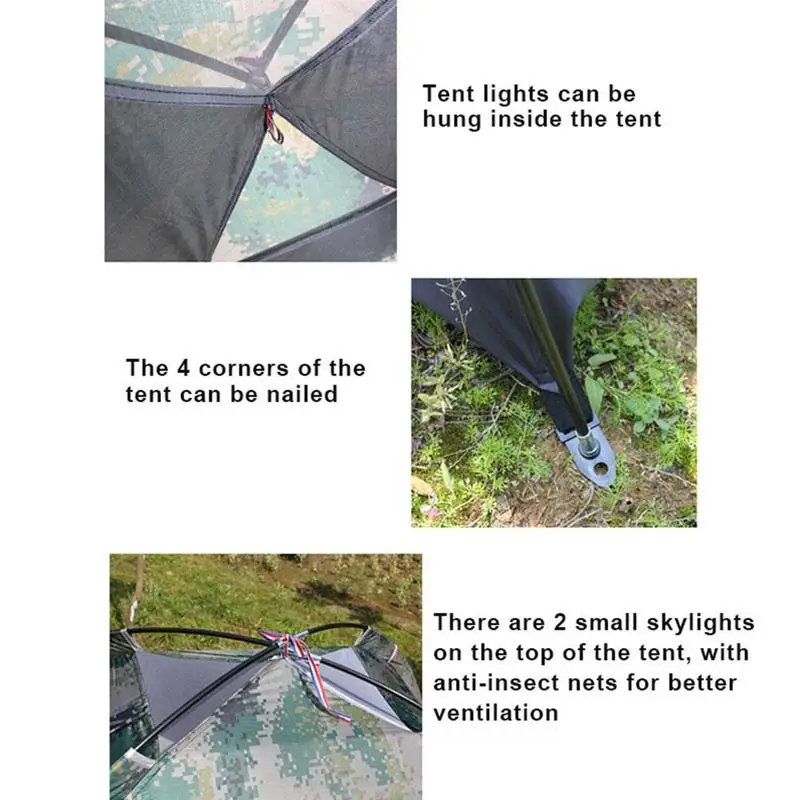 Вентиляционные отверстия: вентиляционные отверстия на верхней части палатки предназначены для улучшения циркуляции воздуха и очень дышащие, поэтому они не будут чувствовать себя слишком душно.