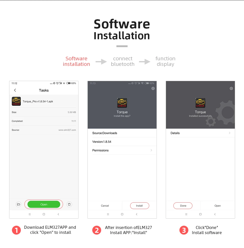 1. Чтение диагностических кодов неисправностей, как общих, так и конкретных производителей, и отображение их значения(Более 3000 общих кодов в базе данных).2. Очистить коды неисправностей и выключить MIL ("Проверьте двигатель" светильник)3. Отображение данных датчика тока4. Двигатель об/мин5. Расчетное значение нагрузки6. Температура охлаждающей жидкости7. Состояние топливной системы8. Скорость транспортного средства9. Краткосрочная топливная отделка10. Долгосрочная топливная отделка11. Давление впускного коллектора12. Предоплата времени13. Температура впускного воздуха14. Расход воздуха15. Абсолютное положение дроссельной заслонки16. Напряжение датчика кислорода/соответствующая краткосрочная топливная планка17. Состояние топливной системы18. Давление топливаСписок автомобилей: