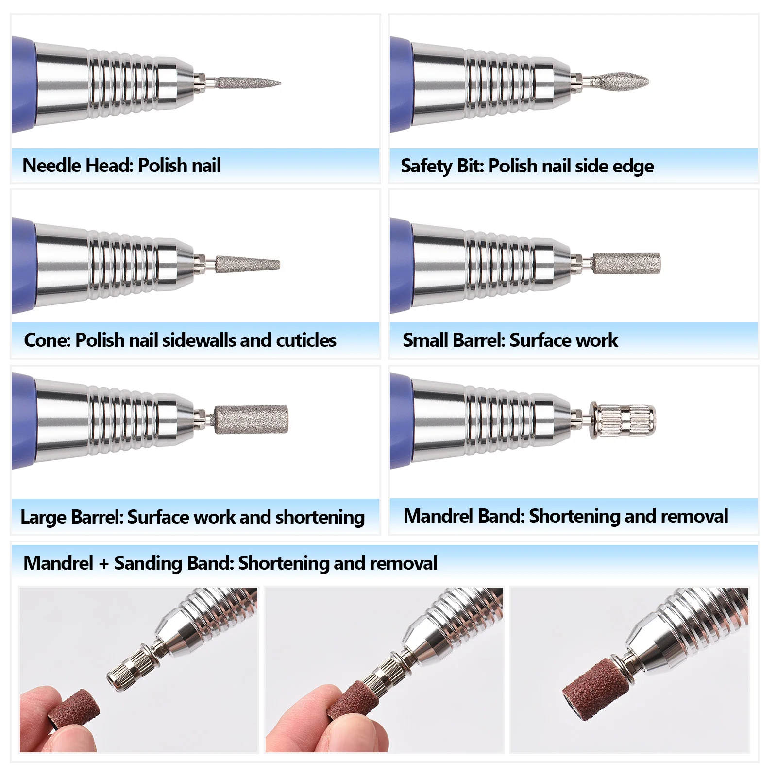 6-ступенчатая Регулируемый легкий Гриндер для ногтей, изготовлен из алюминиевого сплава, с уникальным металлическим блеском, скорость вращения от 0 до 35000 об/мин.