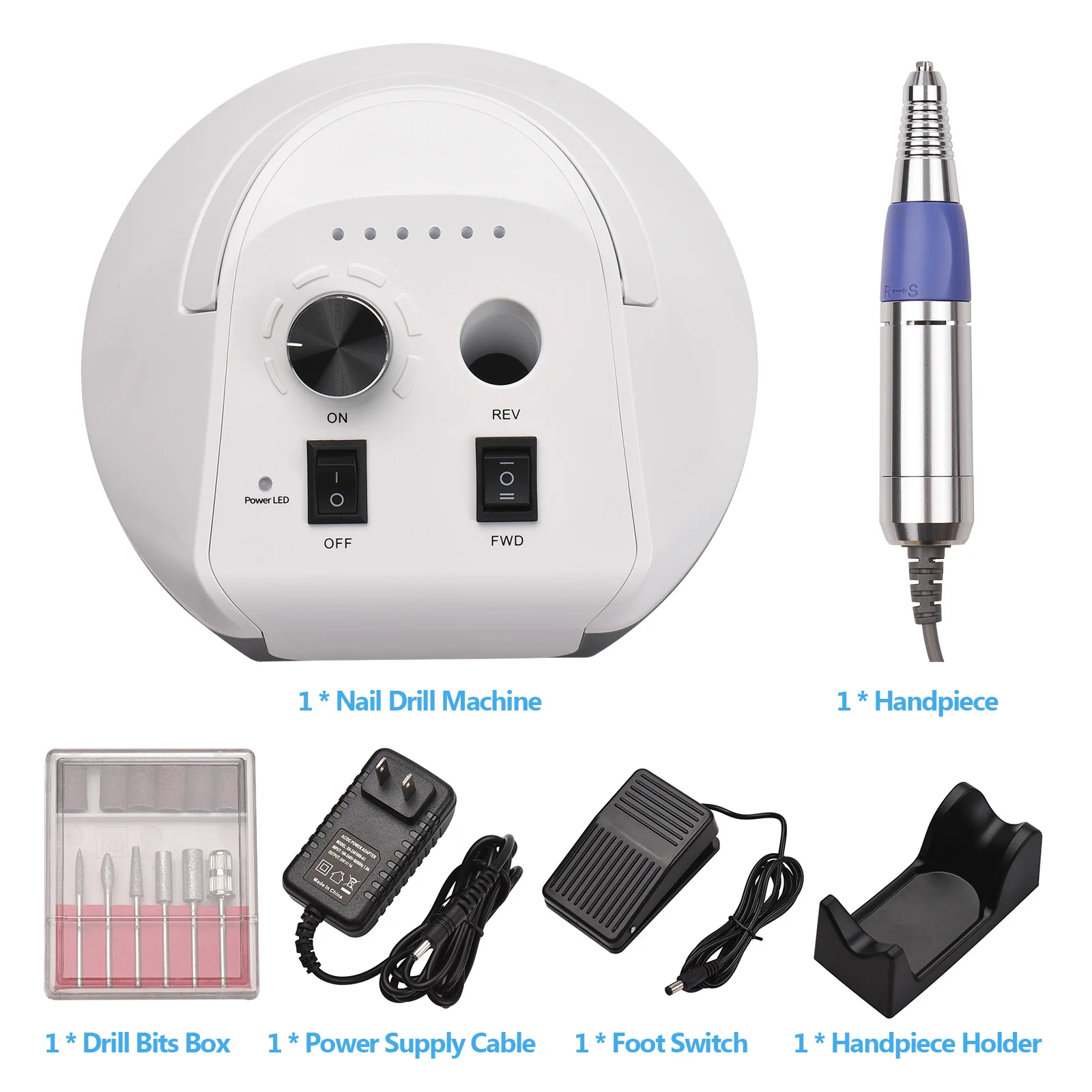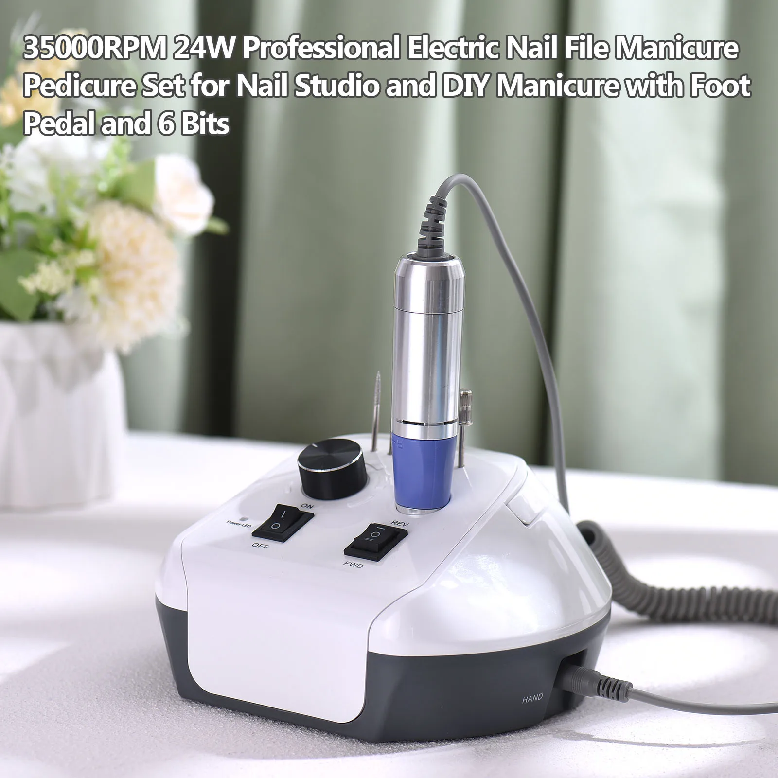 24 Вт Мощный, простой в использовании набор, профессиональное оборудование для полировки ногтей, оснащено 6 шлифовальных головок, проводная ручная шлифовальная ручка, шлифовальный кронштейн ручки, педаль.