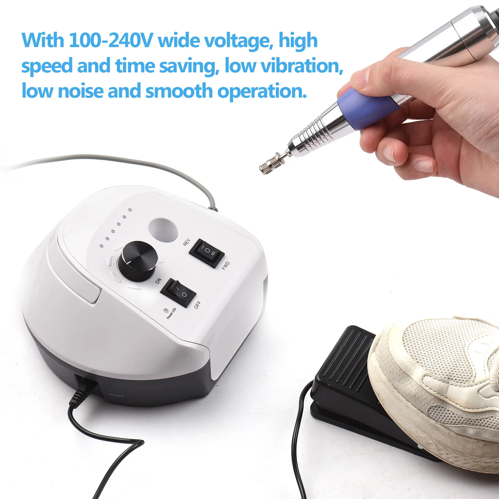 С широким напряжением 100-240 В, высокой скоростью и экономией времени, низкой вибрацией, низким уровнем шума и плавной работы, он используется для шлифовки, гравировки, резки, полировки, И удаление геля/акрила/натуральных ногтей.