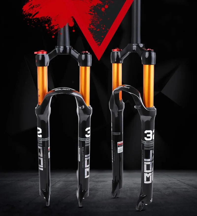 Материал: амортизирующая вилка для горного велосипеда, изготовленная из высококачественного алюминиевого сплава + магниевого сплава, прочная и долговечная, стабильный контроль вашего велосипеда, играет защитную роль в уличном велоспорте
