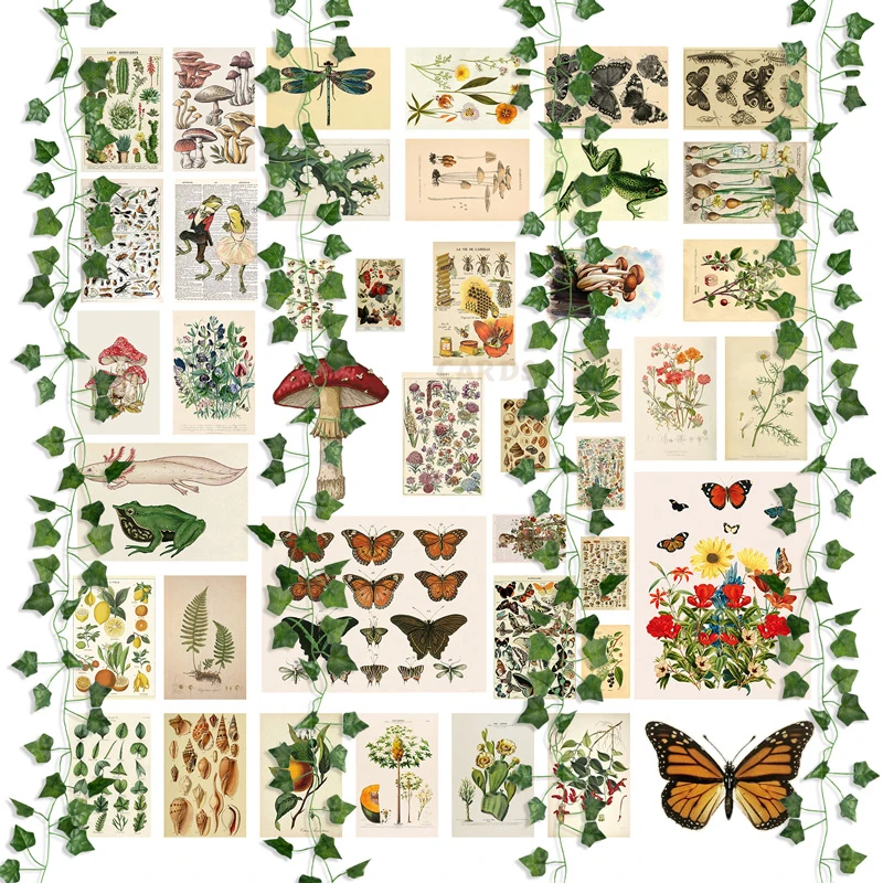 Продукт: 45 шт винтажный ботанический эстетический настенный набор коллажей