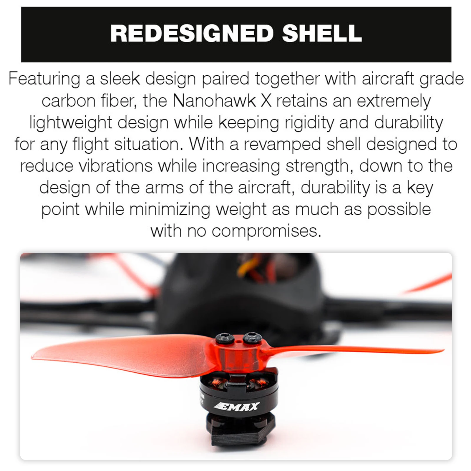 Надежный опыт полета: от дизайна до силы, Nanohawk X включает цели EMAX обеспечивать платформу для всех пилотов испытать полет в надежной упаковке.