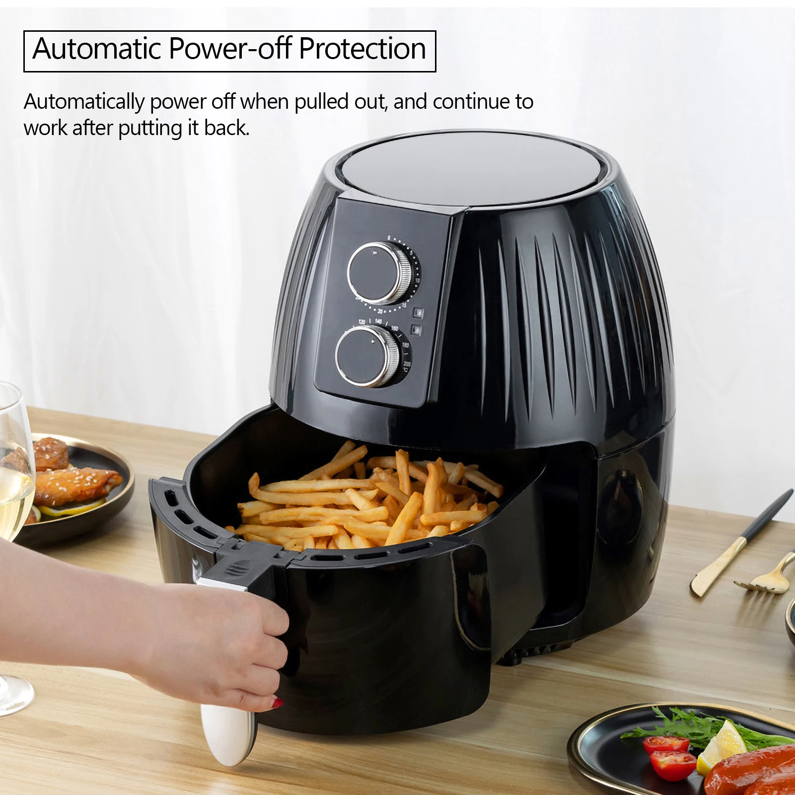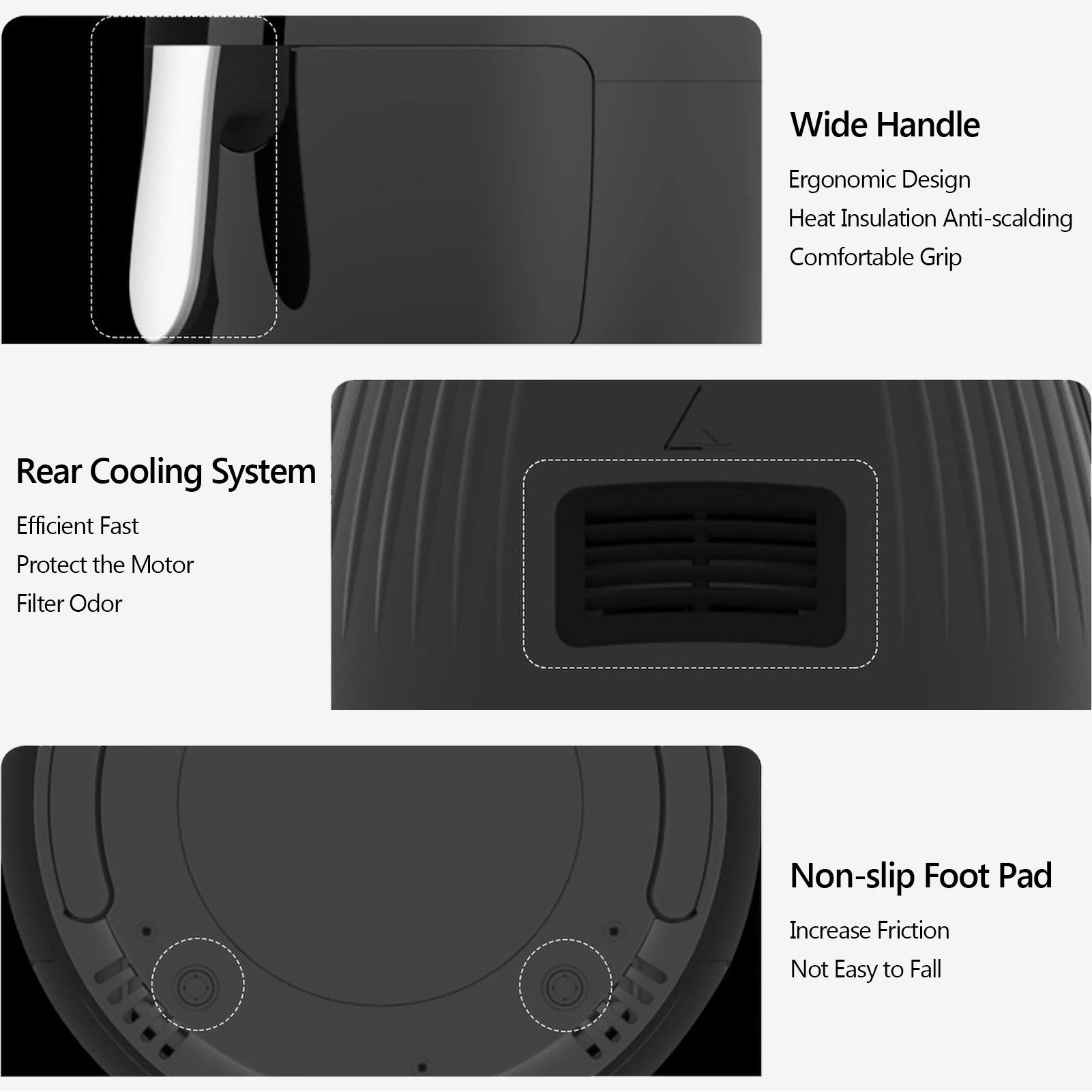 [Прост в использовании] Эта воздушная фритюрница имеет дизайн с двумя ручками управления, который прост и удобен в эксплуатации. Он имеет встроенный точный модуль, температура на месте, и сроки точные, помогая вам легко сделать вкусную еду.
