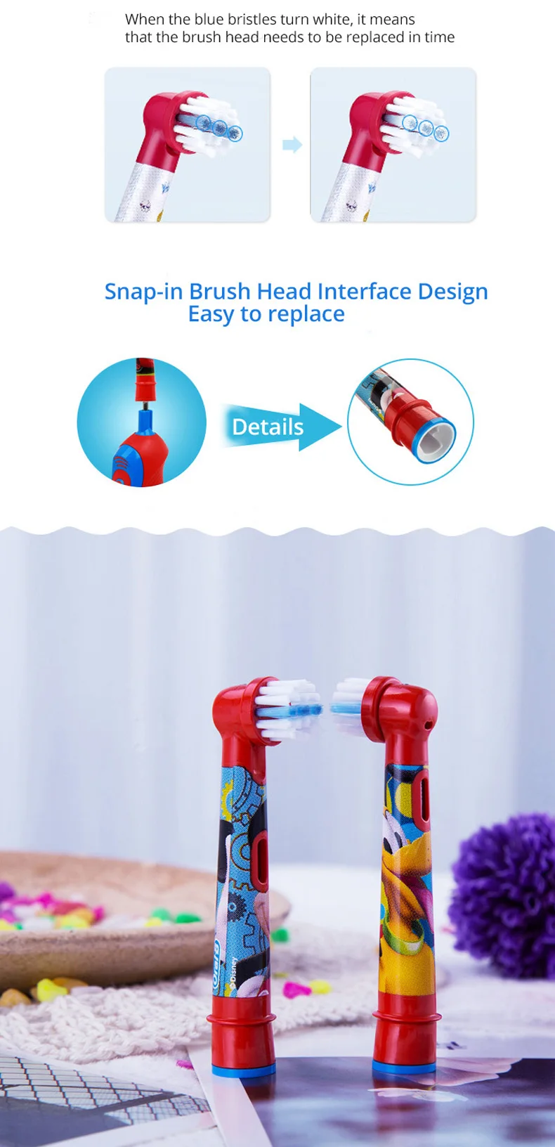 Oral-B Сменная головка щетки EB10 для Oral-B, электрическая зубная щетка для детей, Вращающаяся круглая мягкая щетина с мультипликационным принтом