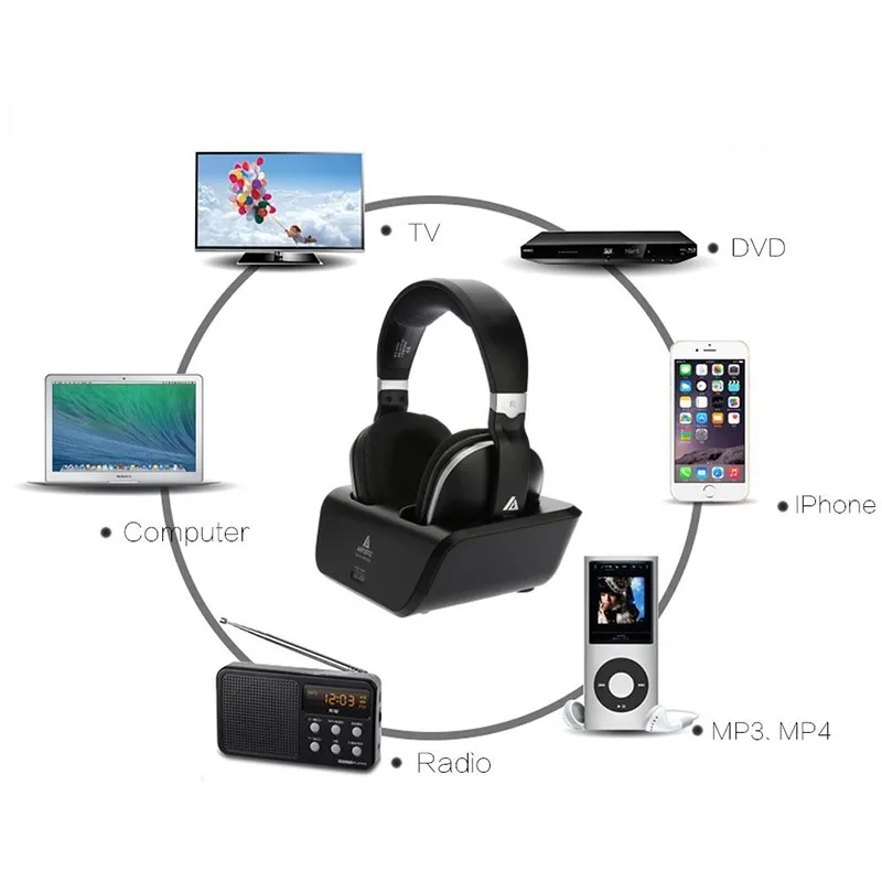 Введение2,4 ГГц цифровые беспроводные наушники для прослушивания музыки без потери качества Ritmix использует новейшие цифровые беспроводные технологии, что позволяет вам наслаждаться музыкой и ТВ звуком в любом месте в вашем доме. Просто подключите систему к любому источнику звука, например DVD, CD, TV, VCR, Hi-Fi и радио. Особенности1. 2,4 GHz цифров Технология2. 31-канальный Авто частоты система поиска3. Интеллектуальная память громкости4. Оповещение о низком энергопотреблении5. Высокомощные NiMh батареи6. Автоматический контактный зарядный механизм7. Автоматическое включение/выключение8. Муфта9. Механизм быстрой зарядки Технические характеристики1. Рабочее напряжение: передатчик/зарядное устройство5 в постоянного тока 550ма2. Приемник: 2*1,2 V AAA3. Частотная характеристика: 25 Гц-20 кГц4. Несущая частота: 2,4 ГГц5. Режим передачи: GFSK6. Искажение: <0.5%7. Отношение сигнал/шум: >70 дБ8. Расстояние передачи: >30 м Пожалуйста, убедитесь, что ваш ТВ набор кистей отличается блестящими 3,5 мм или RCA Интерфейс, прежде чем оформить заказ!