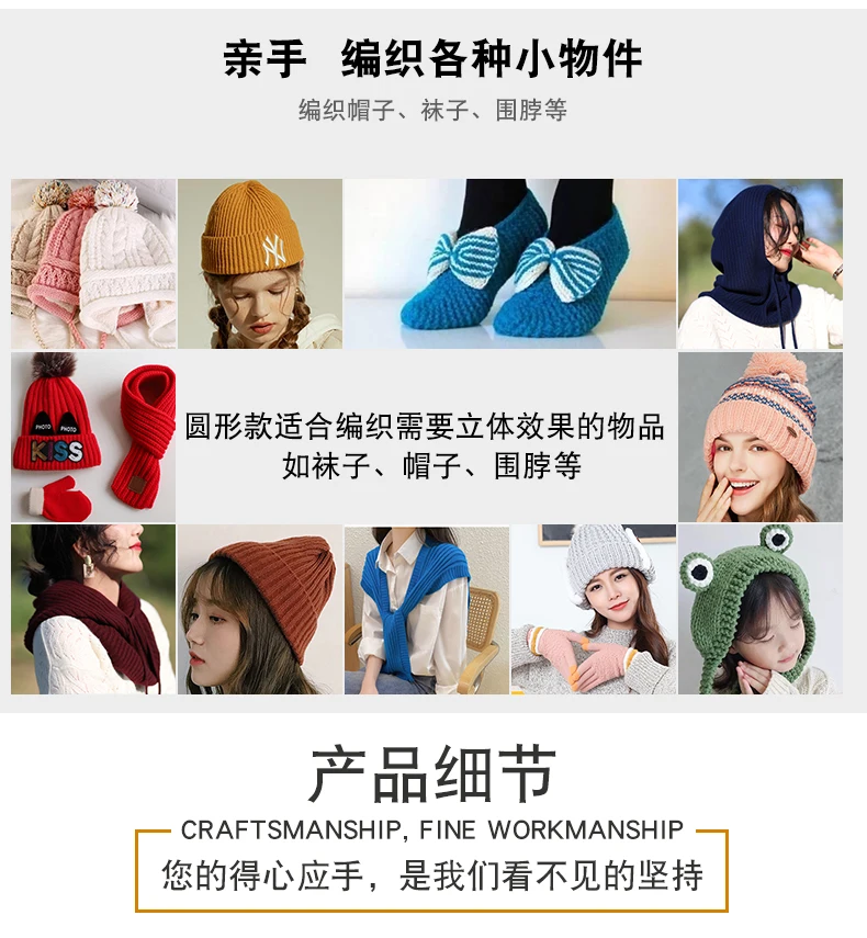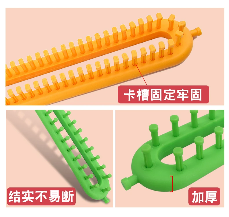 1. Экологически чистые наборы станков, прищепки с пряжкой, без клея, без формальдегида, легко вставляются в отверстия и вытягиваются (с помощью маленького молотка и тиски), В соответствии с потребностями вязания.