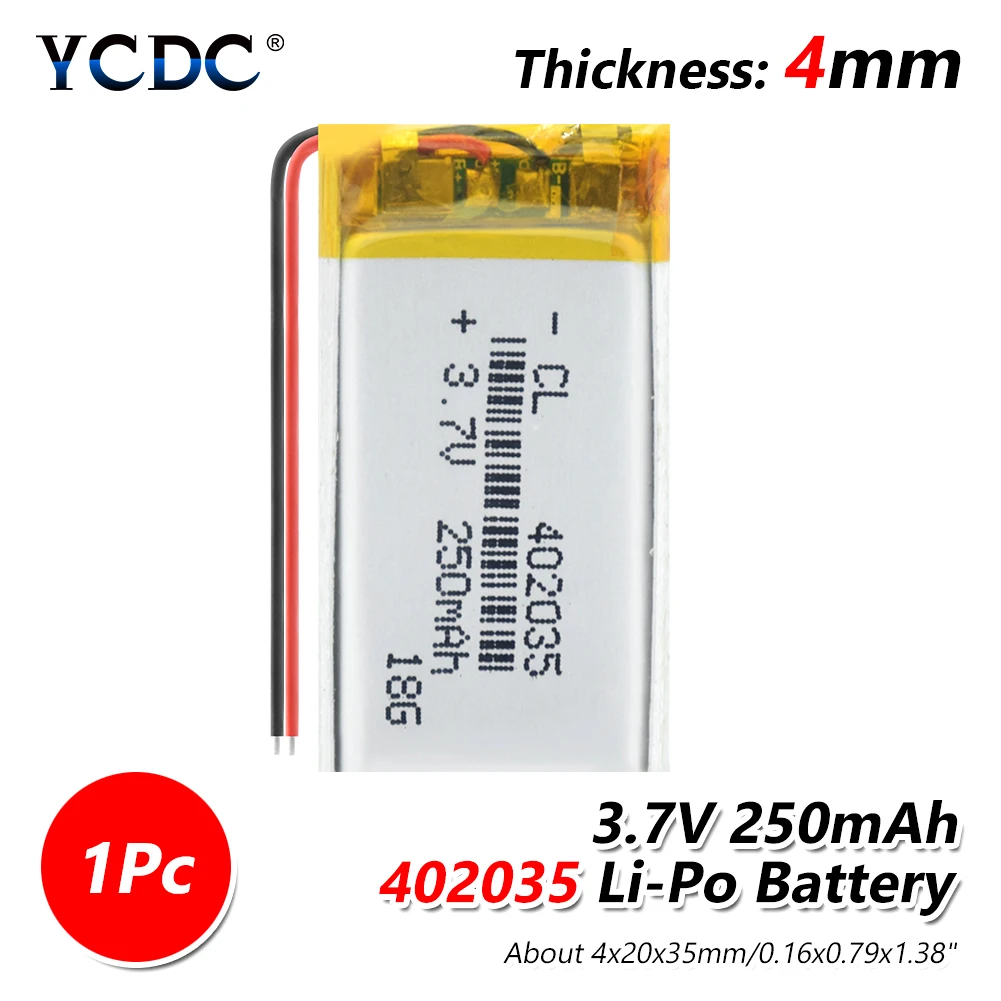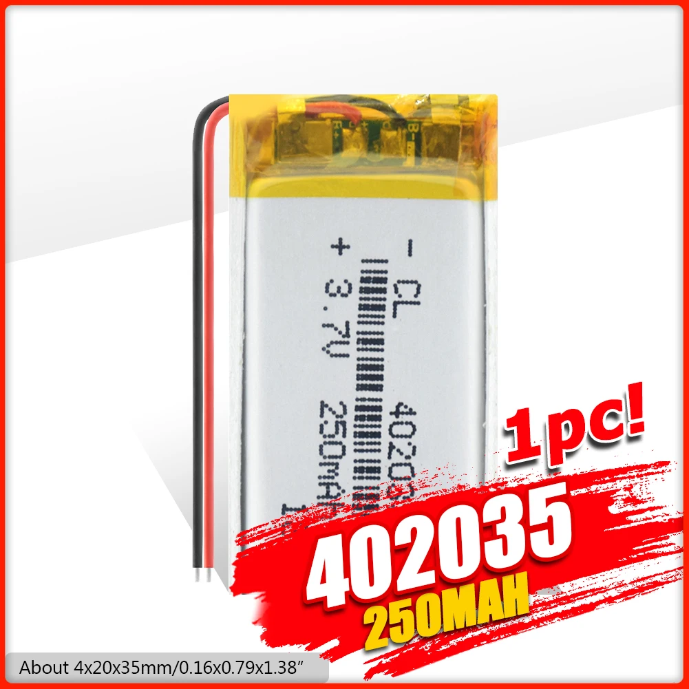 Высокое качество 402035Перезаряжаемый литий-полимерный аккумулятор с двумя проводами. ЛипоСверхтонкие аккумуляторы, вес и мощный светильник. Очень низкий саморазряд и низкое внутреннее сопротивление.