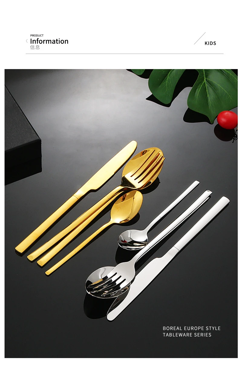 2. Нож и вилка: зубцы вилки острые и неблагоприятные, а края гладко отполированы, не повреждая рот; Головка ножа имеет четкие зубчики, легко резать еду, безопасно и без беспокойства.