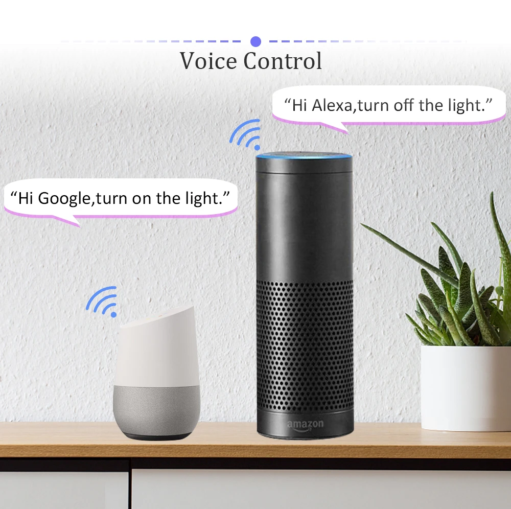 Отрегулируйте включение/выключение, яркость и меняйте светильник с помощью голосовой команды. (Необходимо соответствовать умным динамикам)