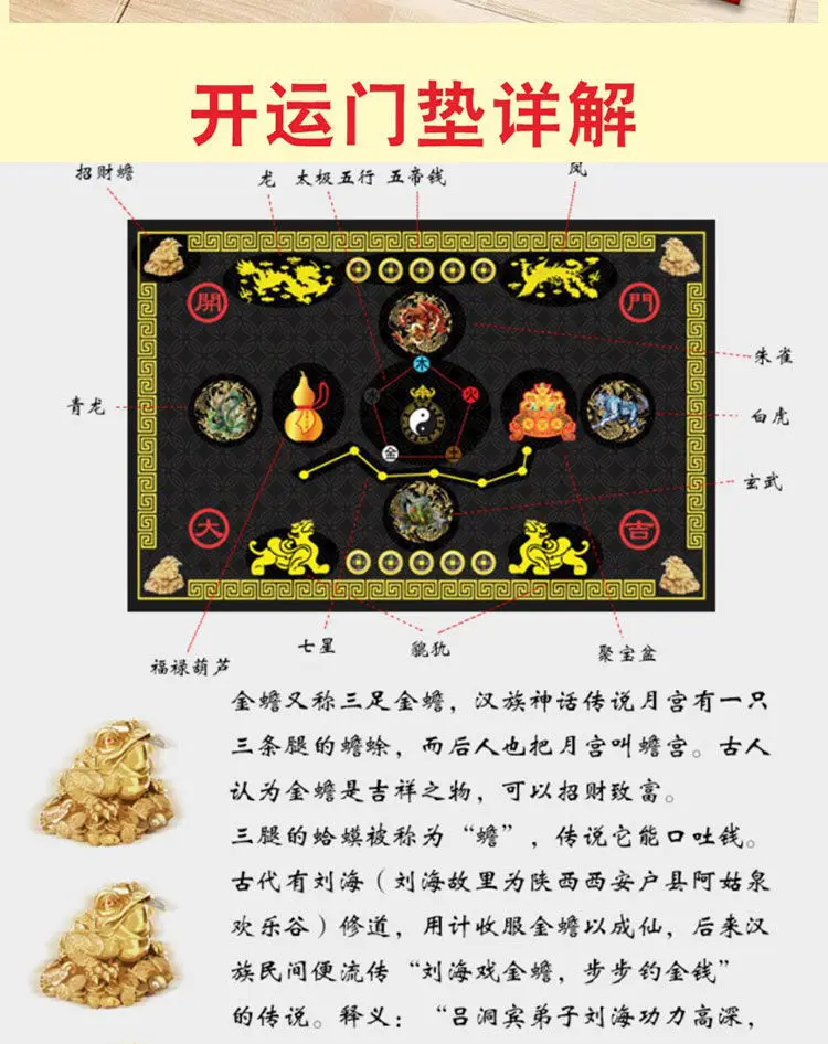Семь звезд девять удачи дверь мат Тай Чи пять элементов хорошее состояние пять император перевод денег желтый пол мат Lucky God Beast индивидуальные оттоманские