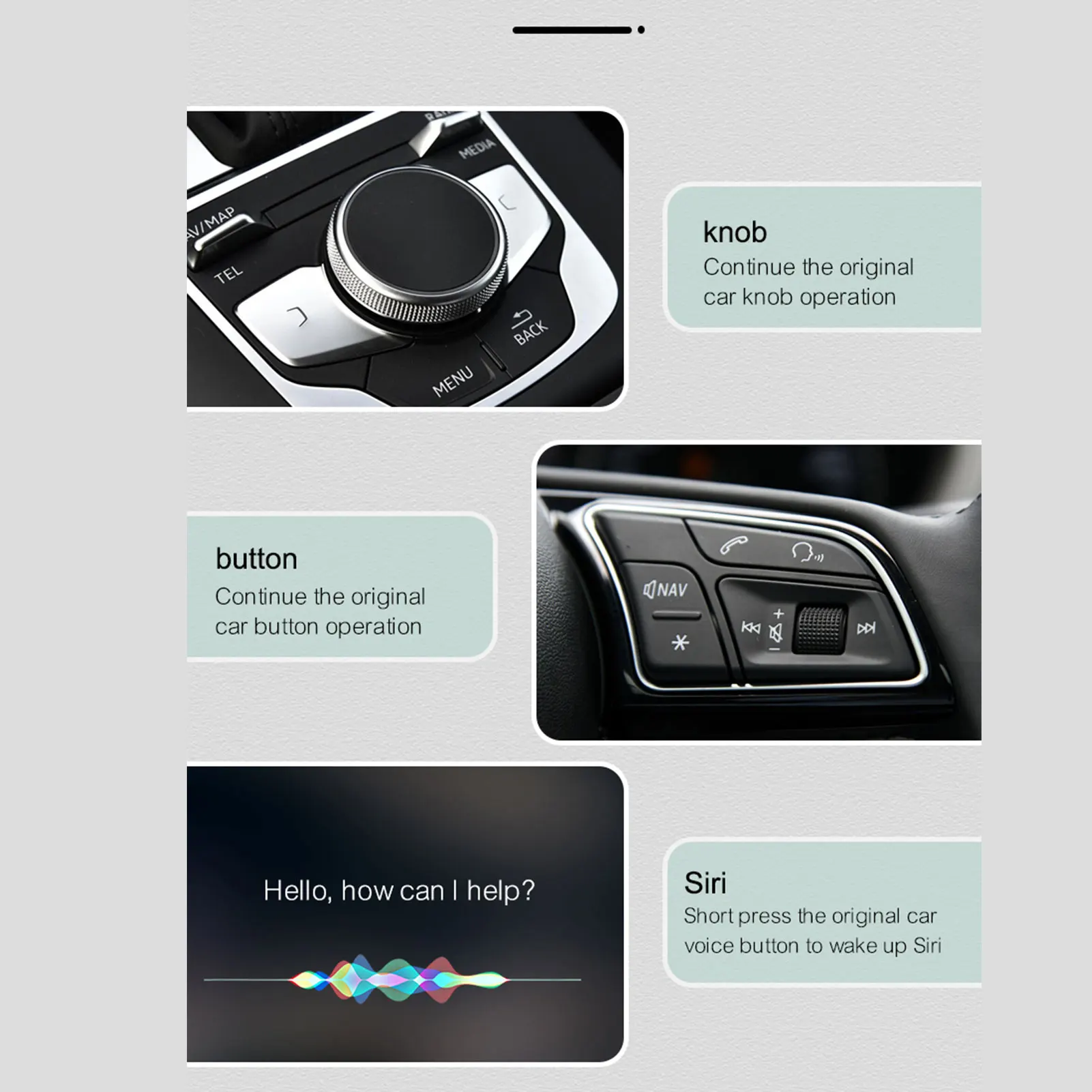 2. Основные функции: Этот адаптер поддерживает Голосовое управление, Siri, gps-навигационное приложение (навигация в реальном времени), онлайн-музыкальное приложение, телефон, зеркальное отображение экрана, для iTunes, музыка или установленные приложения и доступ к сообщениям.
