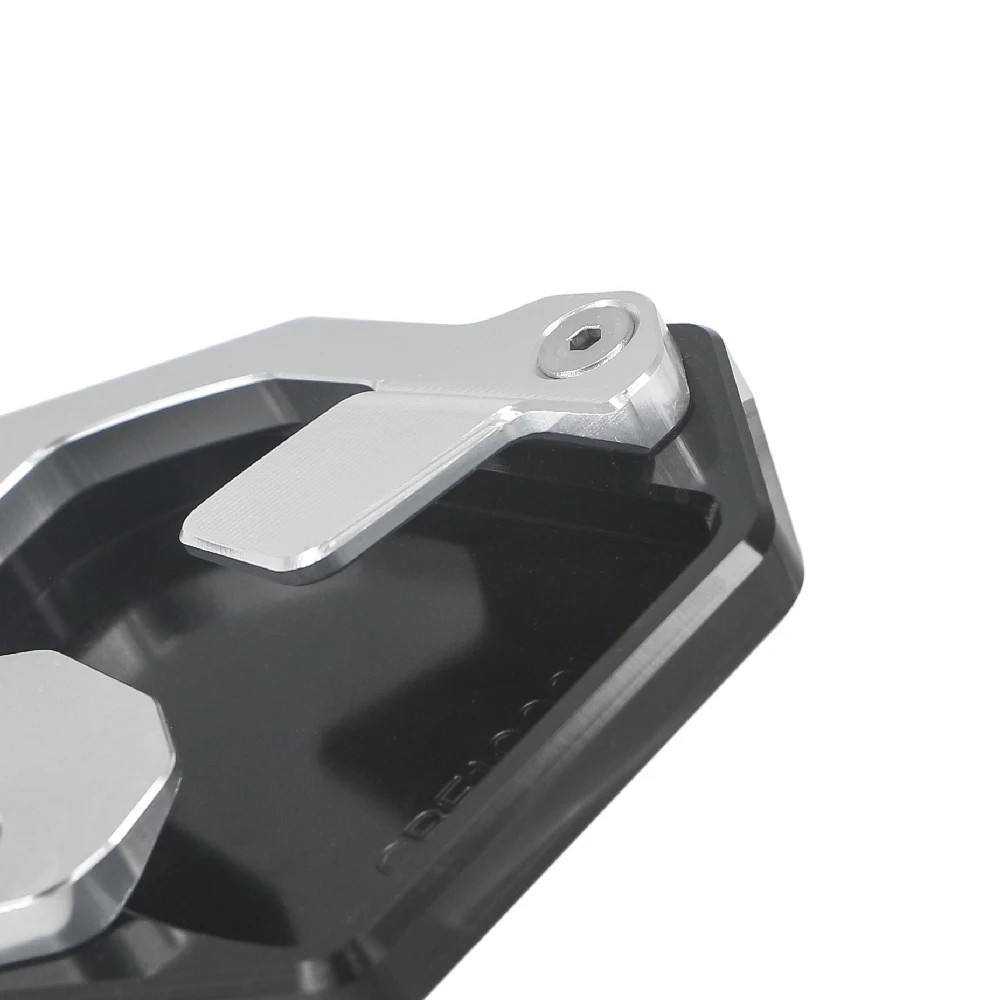 【 Противоскользящая функция 】расширение области поддержки боковых стендов может равномерно рассеивать вес мотоцикла и увеличивать площадь контакта подставки и земли, предотвращая скольжение. Помогает гонщикам контролировать транспортное средство и стабилизировать тело транспортного средства.
