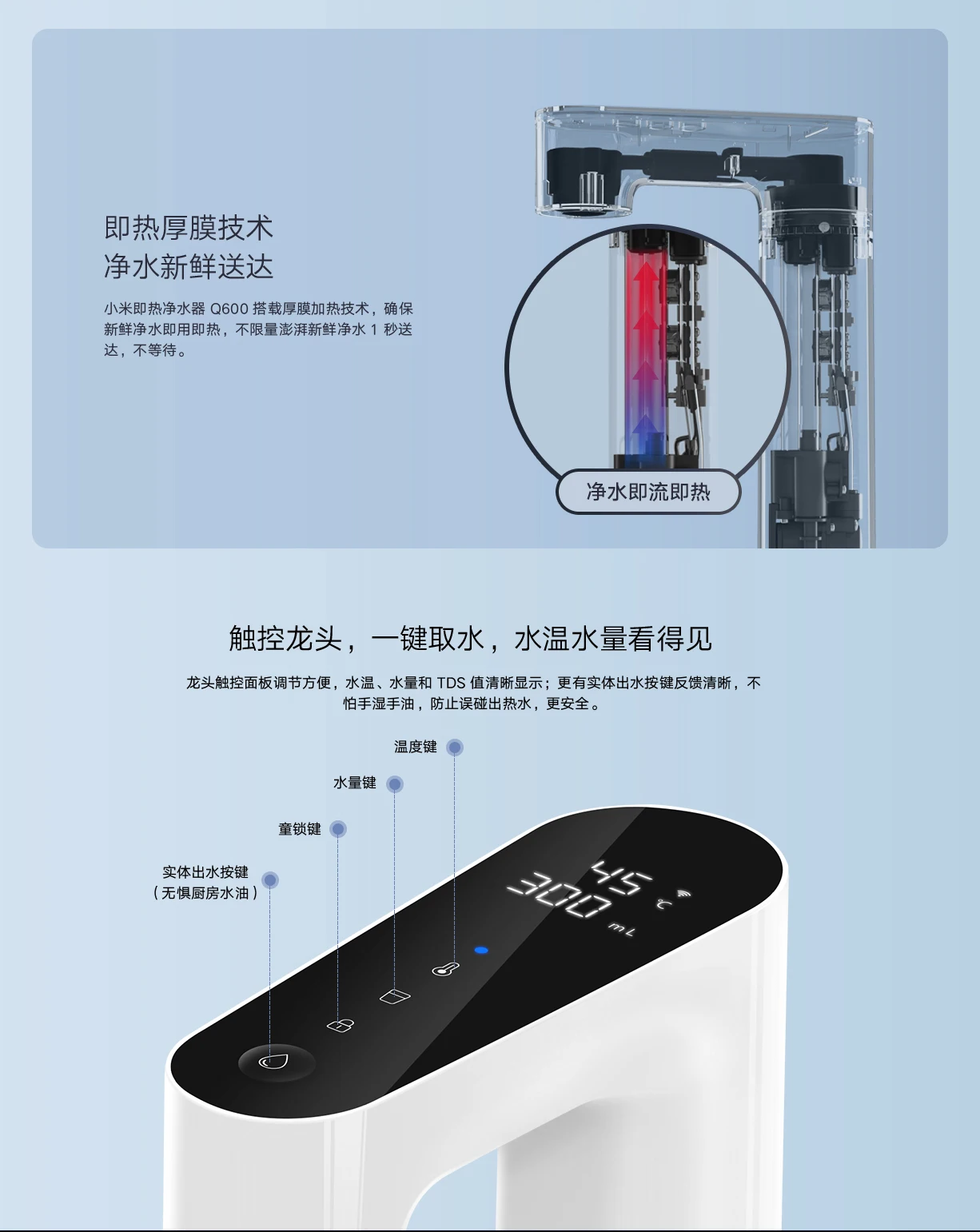 Xiaomi Mijia мгновенный термоочиститель воды Q600 сенсорный кран 1s получает тепло Свежая горячая вода двухъядерный 6-ступенчатый фильтр с приложением Mijia