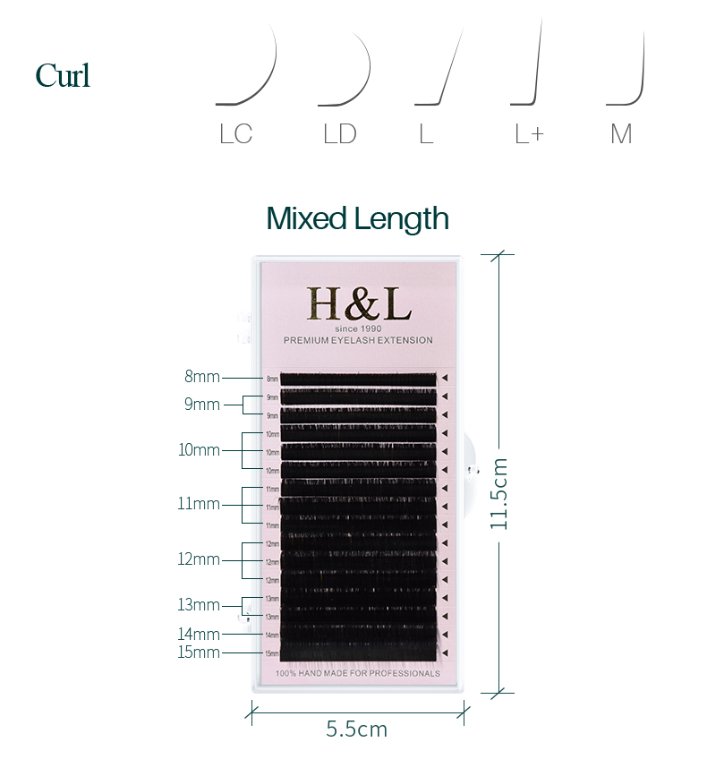 L/L +/LC/LD/LU(M)/N curl 16 рядов накладные ресницы норковый черный материал 7-15 мм смешанный лоток L curl макияж ресницы