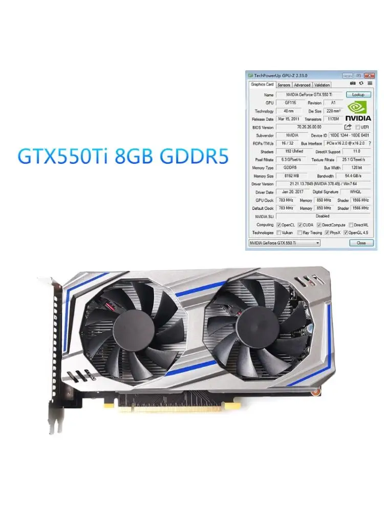 Продукт является совершенно новым продуктом, память 8G, модель 550TI. Чтобы загрузить драйвер, вы можете загрузить соответствующий драйвер на официальном сайте Nvidia.